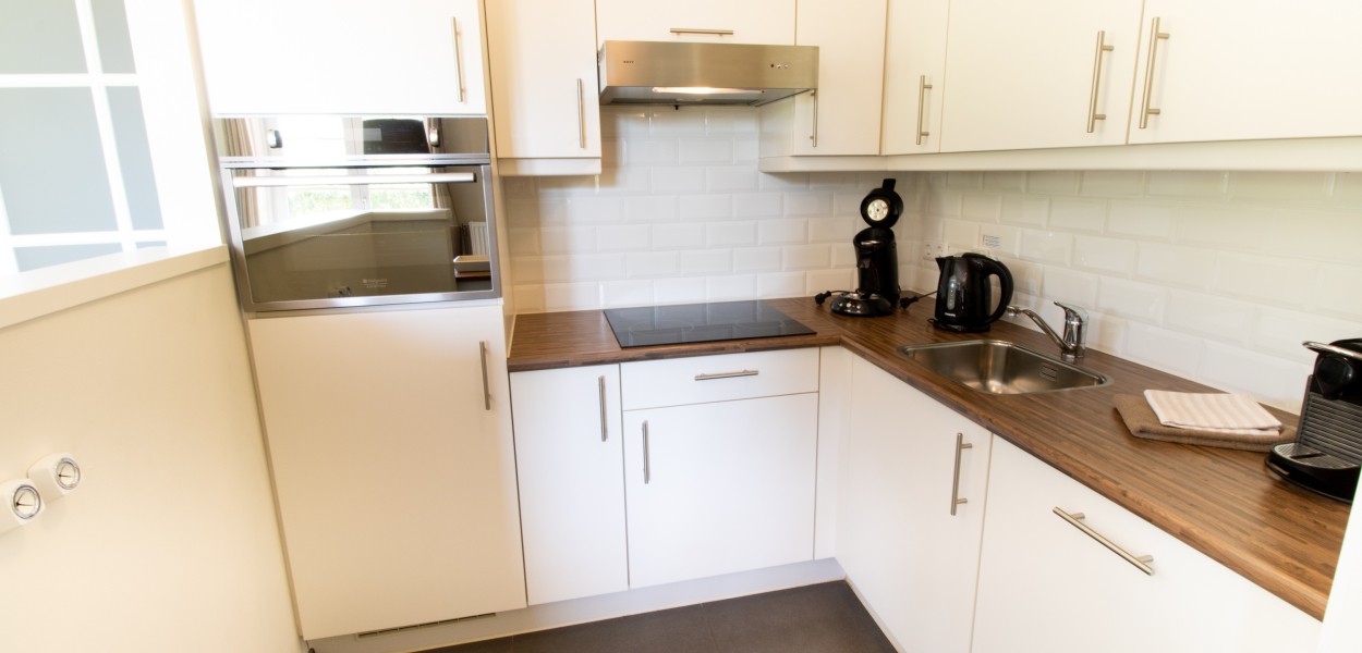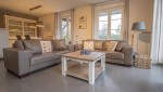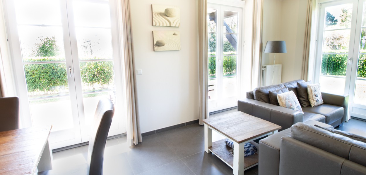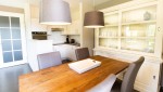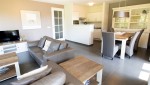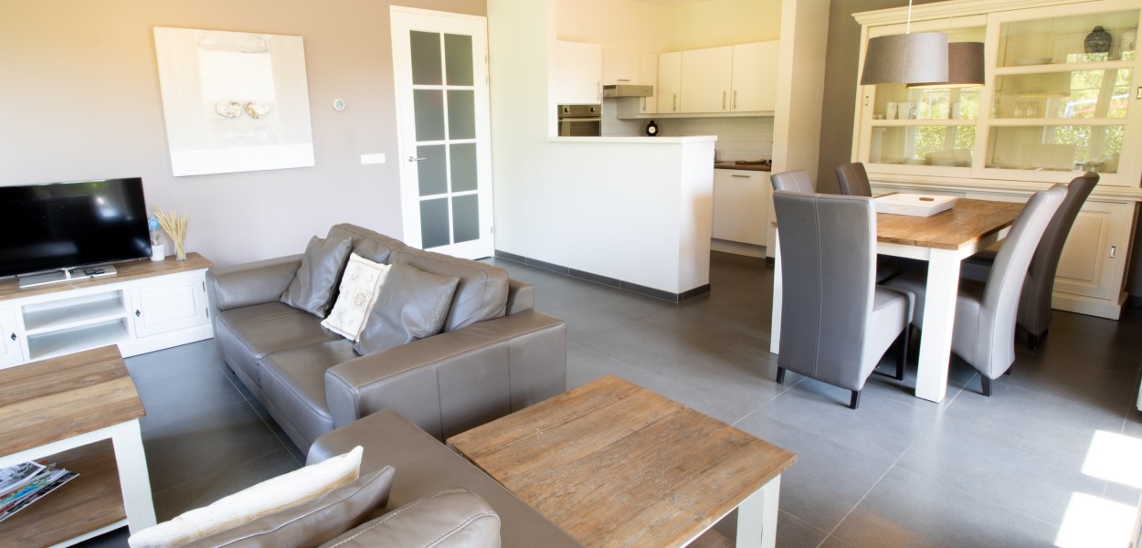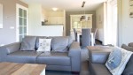 In het woongedeelte is een comfortabele zithoek met televisie voorzien. De open keuken wordt aan de ruimte verbonden door de ruime eettafel en is van alle gemakken voorzien. U vindt er onder andere een keramisch fornuis, combimagnetron, koel-vriescombinatie, Senseo-apparaat, Nespresso-machine en een afwasmachine.