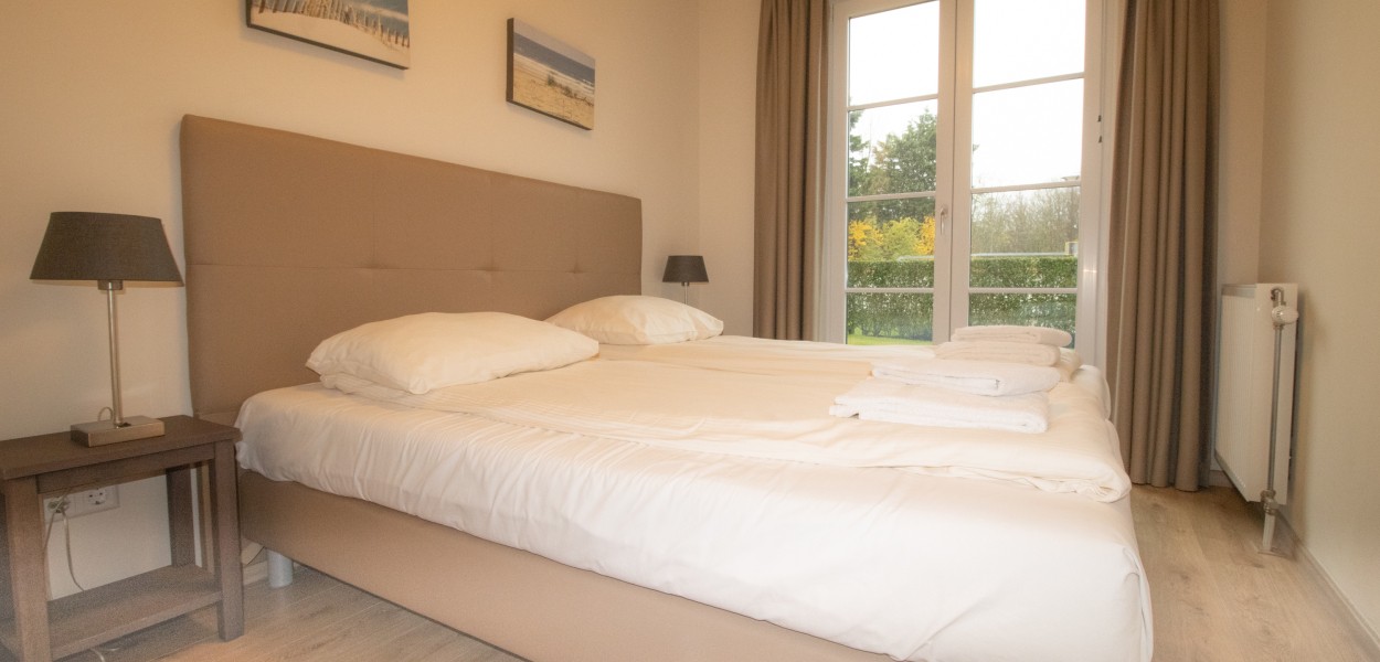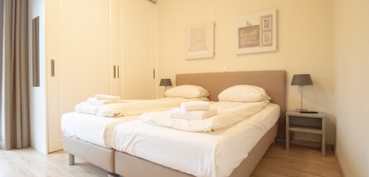Beide slaapkamers van deze woning zijn praktisch ingericht met onder andere extra grote kledingkasten. U slaapt op luxe boxspringcombinaties en in de masterbedroom beschikt u over een televisie met digitaal zenderpakket. De badkamer is ingericht met een douche, wastafel en toilet. Een extra toilet bevindt zich in de hal, evenals een handige berging met daarin een wasmachine en een wasdroger.