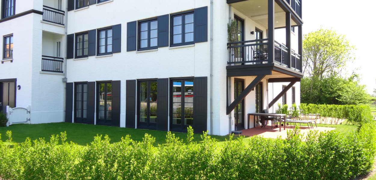 Een comfortabel en licht appartement van 81m² op de begane grond waar ook uw hond van harte welkom is. Vanuit de woonkamer zowel als de slaapkamers, heeft u via de openslaande tuindeuren toegang tot een grote, zonnige tuin met royaal terras. Dankzij de westelijke ligging geniet u hier het hele jaar door al vanaf 11.00 uur van de zon.