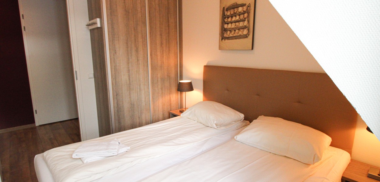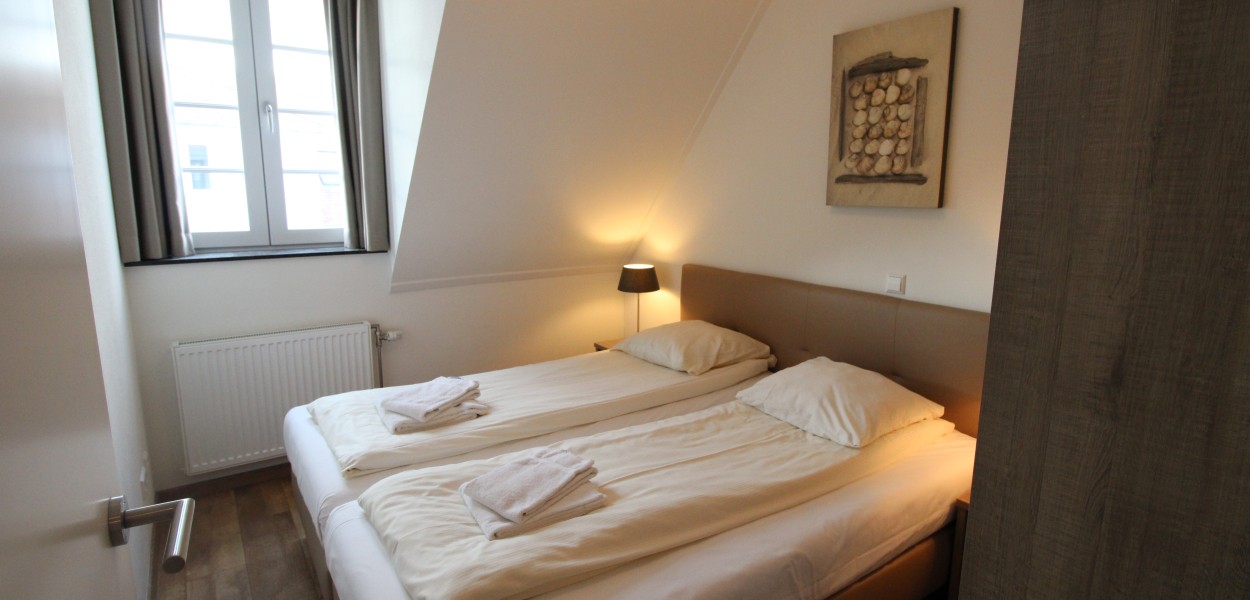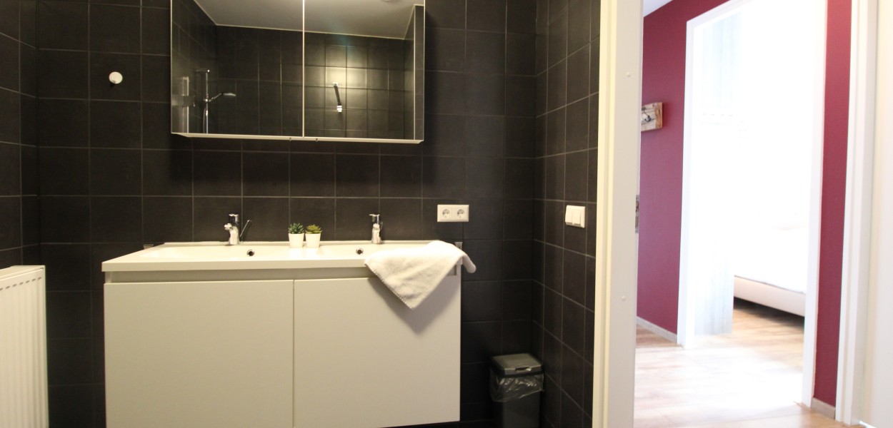 De twee slaapkamers zijn elegant en compleet ingericht. In beide kamers slaapt u op luxe uitgevoerde boxspringcombinaties en beschikt u over voldoende kastruimte. De strak ingerichte badkamer biedt een ruime inloopdouche en een dubbele wastafel. Het aparte toilet bevindt zich in de ruime hal evenals een praktische berging met een wasmachine en een droger.
