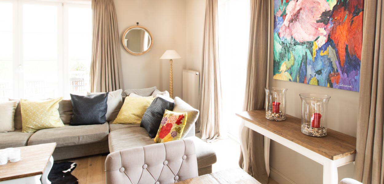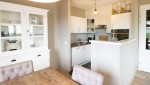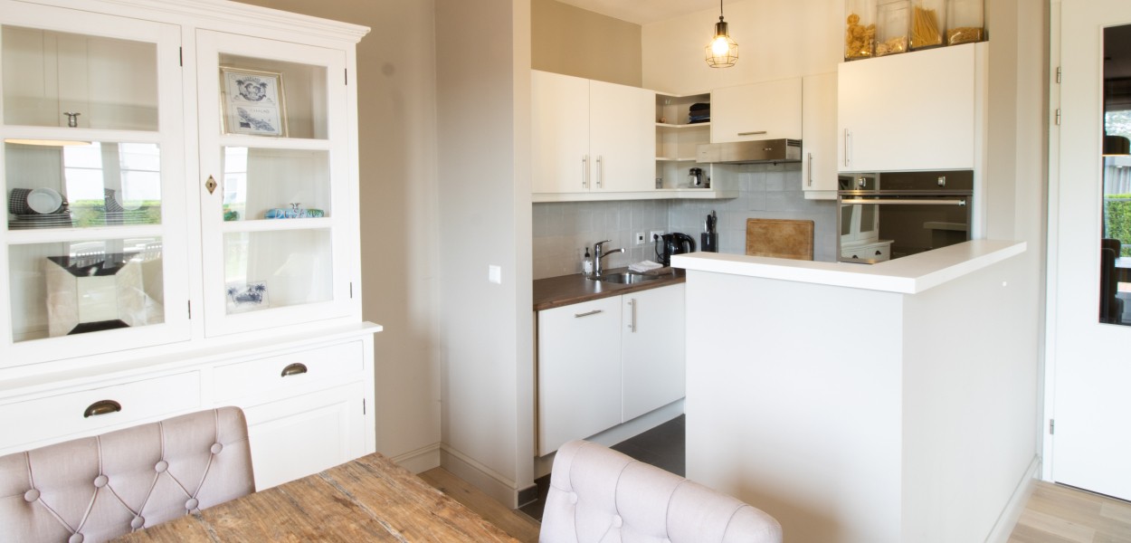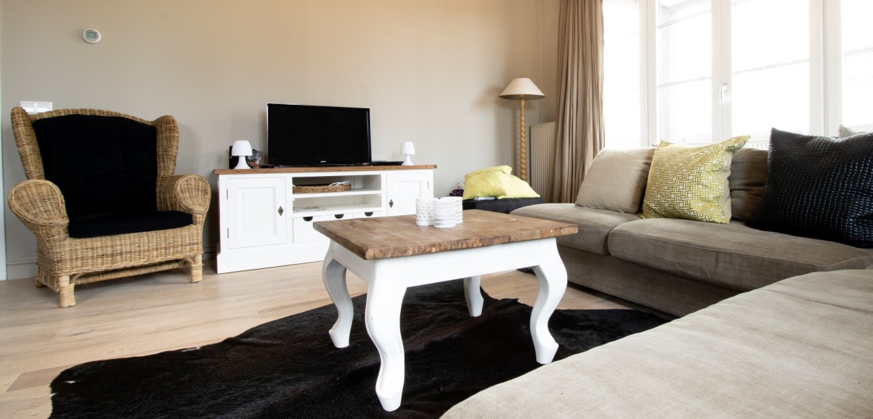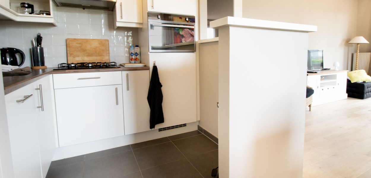 De open keuken is voorzien van een gaskookplaat, combimagnetron, koel-vriescombinatie, een Nespesso koffiemachine, melkopschuimer en afwasmachine. De grote eettafel verbindt de keuken met de woonkamer waar u heerlijk kunt u ontspannen op de comfortabele hoekbank. Door de warme inrichting van deze woning voelt u zich direct thuis. Kortom: in dit appartement zijn alle ingrediënten aanwezig voor een gezellige vakantie met het hele gezin.