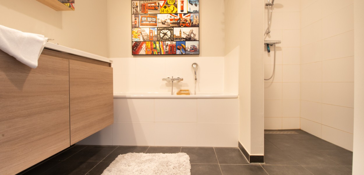 - Met ligbad en inloopdouche