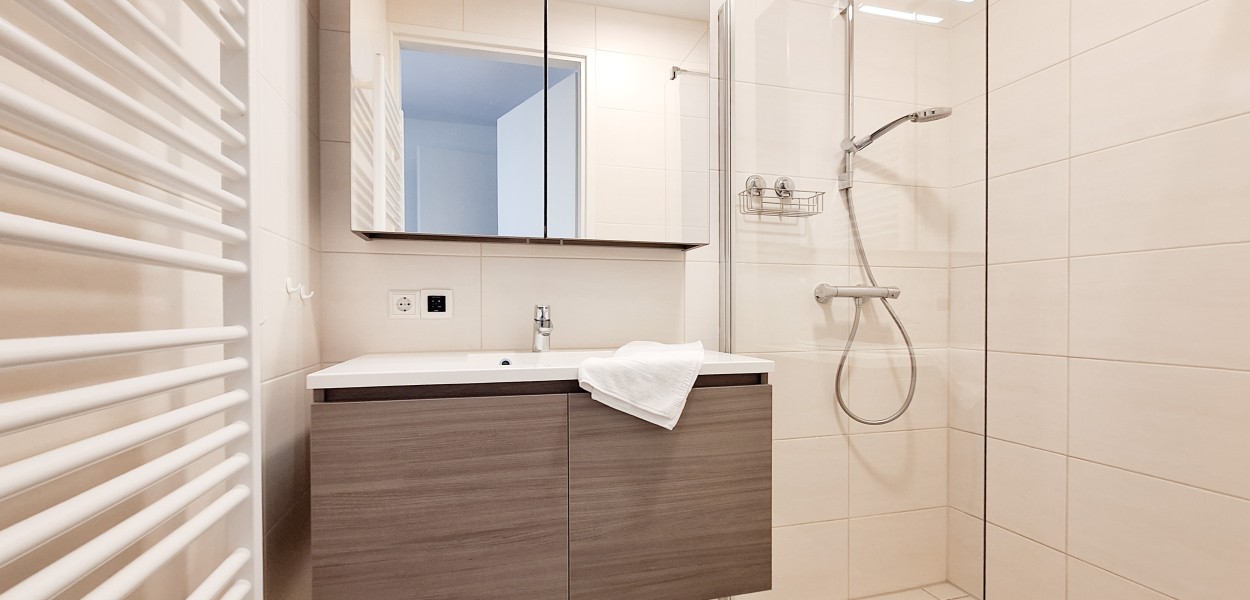 Het woongedeelte is ingericht met een zeer comfortabele zithoek met televisie, een bluray-speler, alsook een selectie dvd’s. De keuken is van alle gemakken voorzien en bevat onder andere een Nespresso-apparaat, koffiefilterapparaat, een inductiekookplaat, combimagnetron, koelkast met vriesvak en een afwasmachine. Het eetgedeelte heeft een grote, gezellige eettafel die in het verlengde van de keuken is geplaatst, waardoor een mooi geheel ontstaat. De beide slaapkamers zijn zeer compleet ingericht met comfortabele boxspringcombinaties en voldoende opbergruimte. De twee badkamers zijn elk met een inloopdouche en wastafel ingericht, de grootste heeft een dubbele wastafel en ook een toilet. Een apart toilet bevindt zich in de hal, evenals een praktische berging met wasmachine en droger.