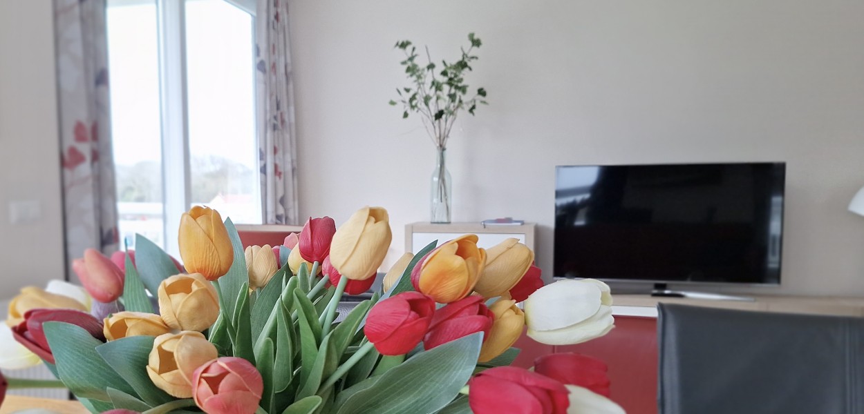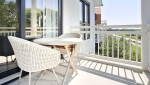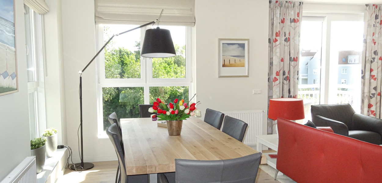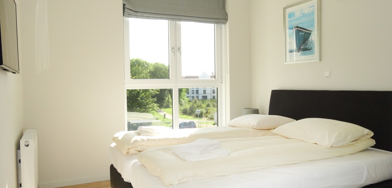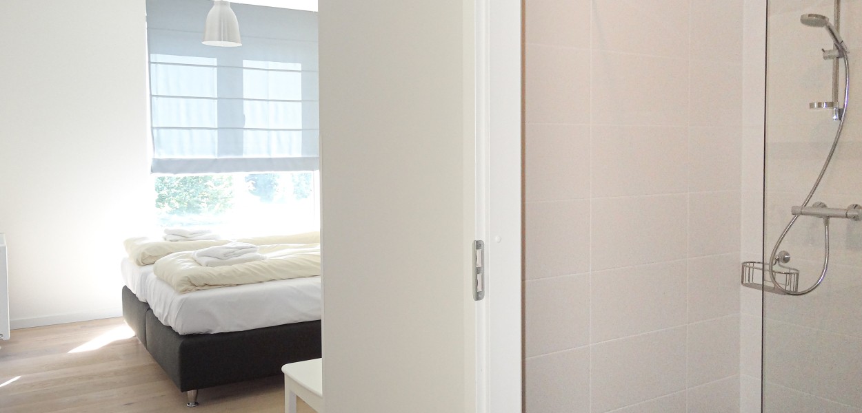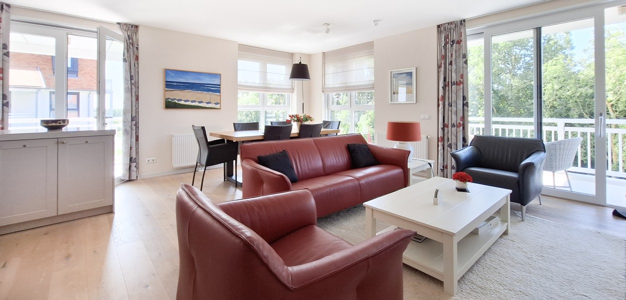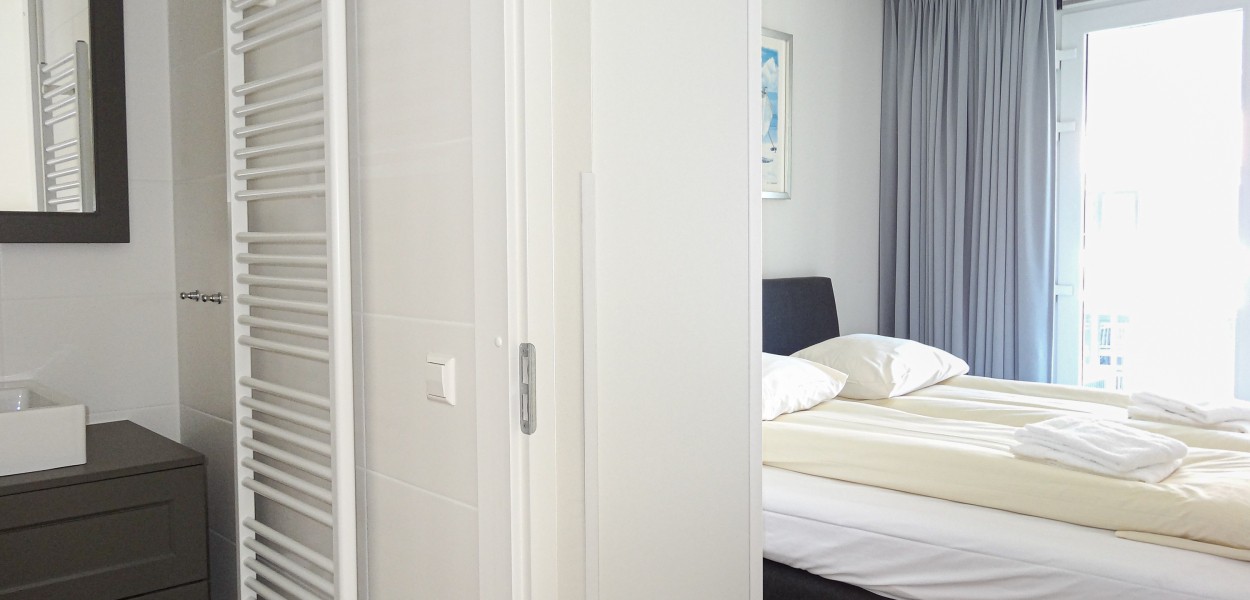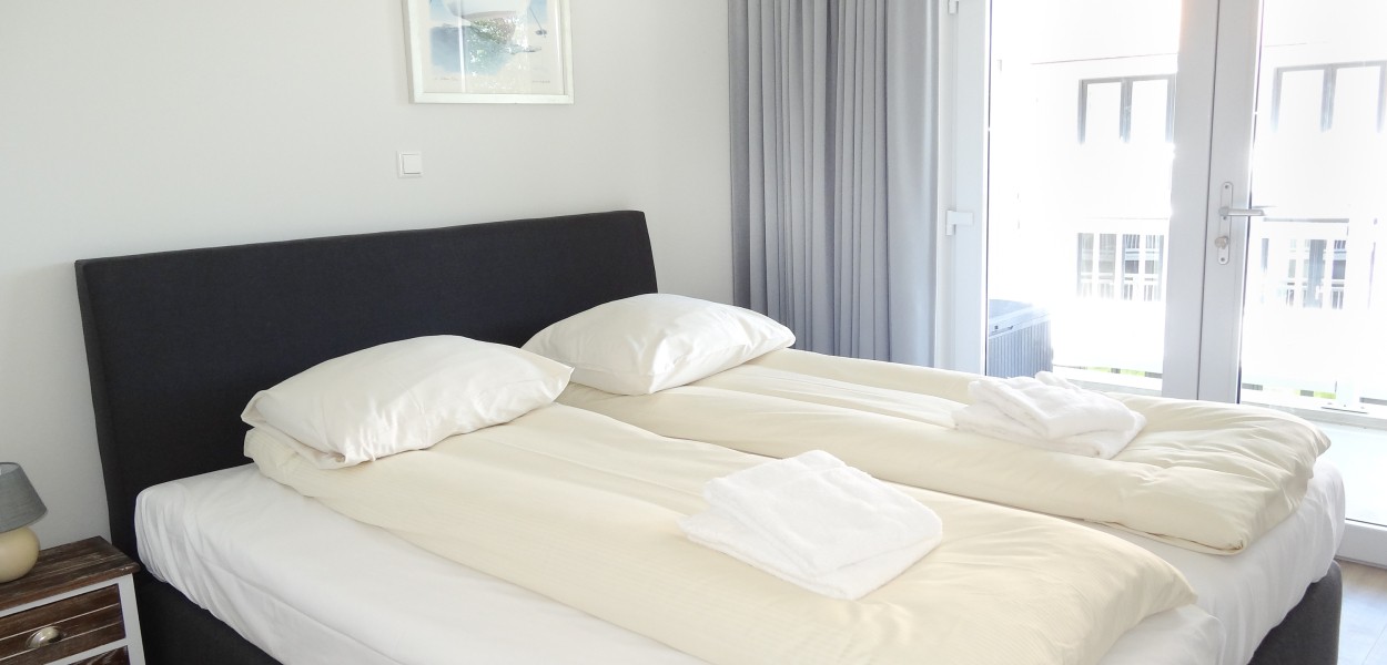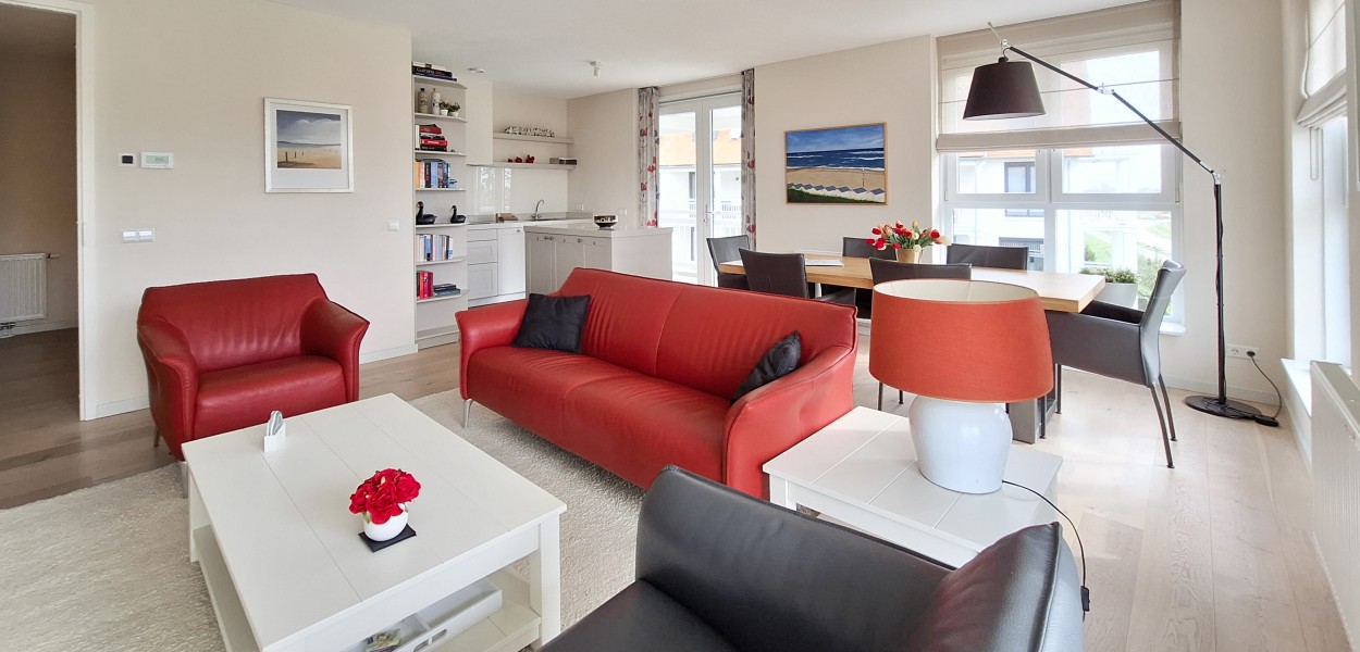 In het ruime leefgedeelte vindt u de woonkamer met prettige zithoek en televisie en een gezellig eetgedeelte. Aansluitend is de luxe open keuken welke is voorzien van een Nespresso apparaat, een klein filterkoffie-apparaatje, inductiefornuis, combimagnetron, koelkast met vriesvak en een vaatwasser. Dit vierpersoonsappartement heeft 2 identieke slaapkamers, beide ingericht met luxe boxspringcombinaties. In beide badkamers vindt u een douche en een wastafel, in de grootste is ook een extra toilet aanwezig. Ook is er standaard een föhn aanwezig. Een apart toilet vindt u in de hal, evenals een praktische berging met wasmachine en droger.