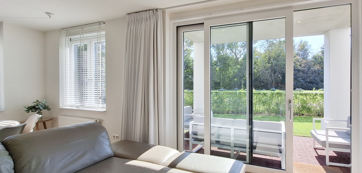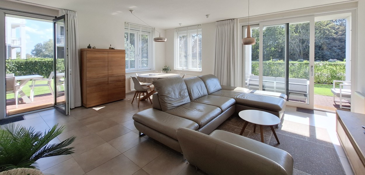 De combinatie van de lichte woonkamer, de luxe sauna en de ruime tuin geeft dit appartement veel luxe en wooncomfort in alle jaargetijden.