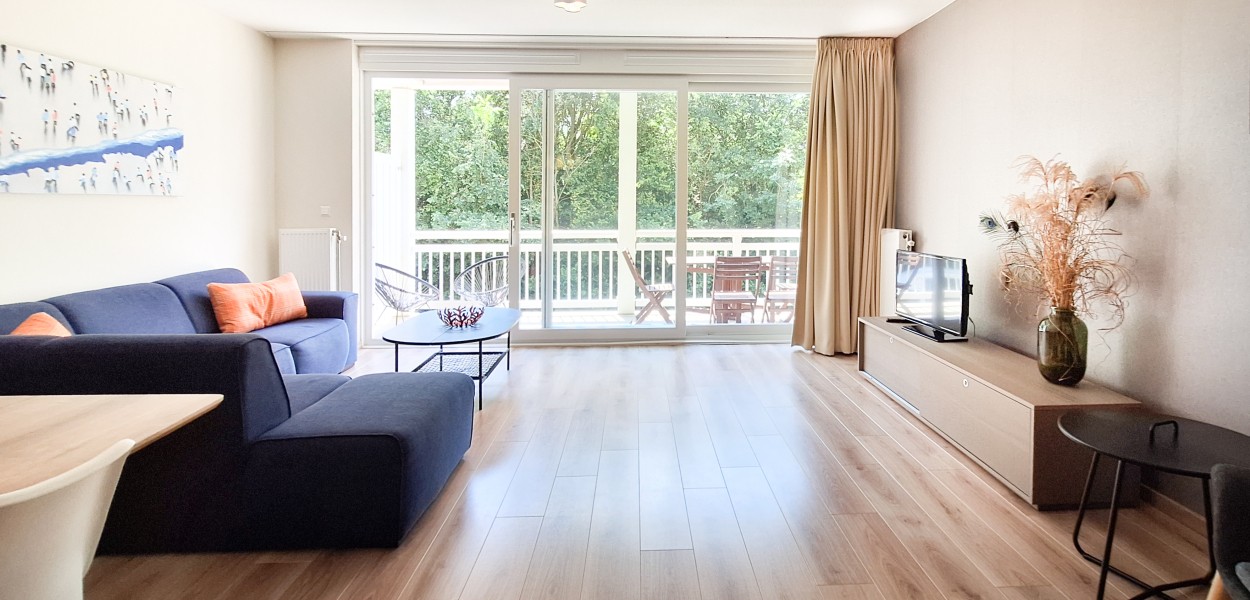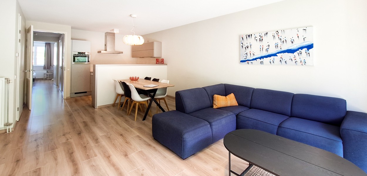 Een licht en ruim appartement van 84m² op de eerste verdieping. De grote schuifpui geeft toegang tot het op het zuiden gelegen balkon met vrij uitzicht. Indien u dit appartement tussen half mei en half september boekt, kunt u kosteloos van de bijbehorende strandcabine gebruik maken. Tevens zijn er enkele gezelschapsspelen beschikbaar voor ouders en kinderen.