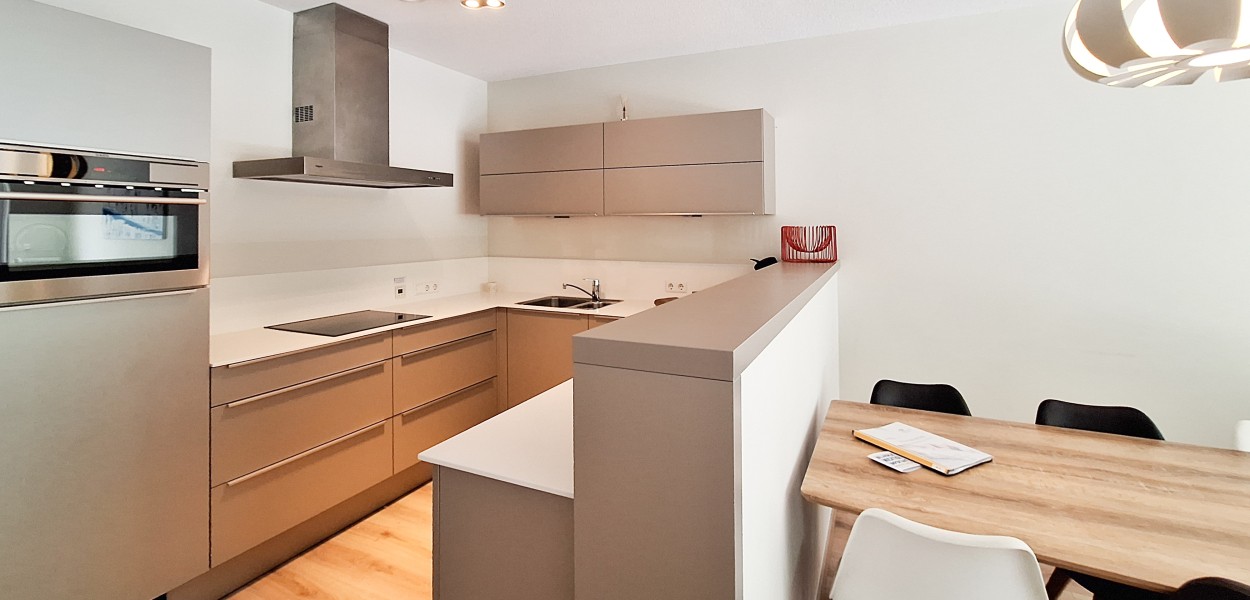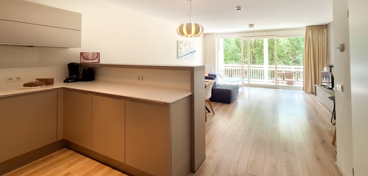 De luxe open keuken is voorzien van een Senseo-apparaat, combimagnetron, koel-vriescombinatie, afwasmachine en uitgebreide inventaris en wordt middels de eettafel verbonden met de uitzonderlijk ruime woonkamer. De combinatie van de ruimtelijke woonkamer, prettige open keuken en de schuifpui naar het balkon geven dit familie-appartement veel wooncomfort.