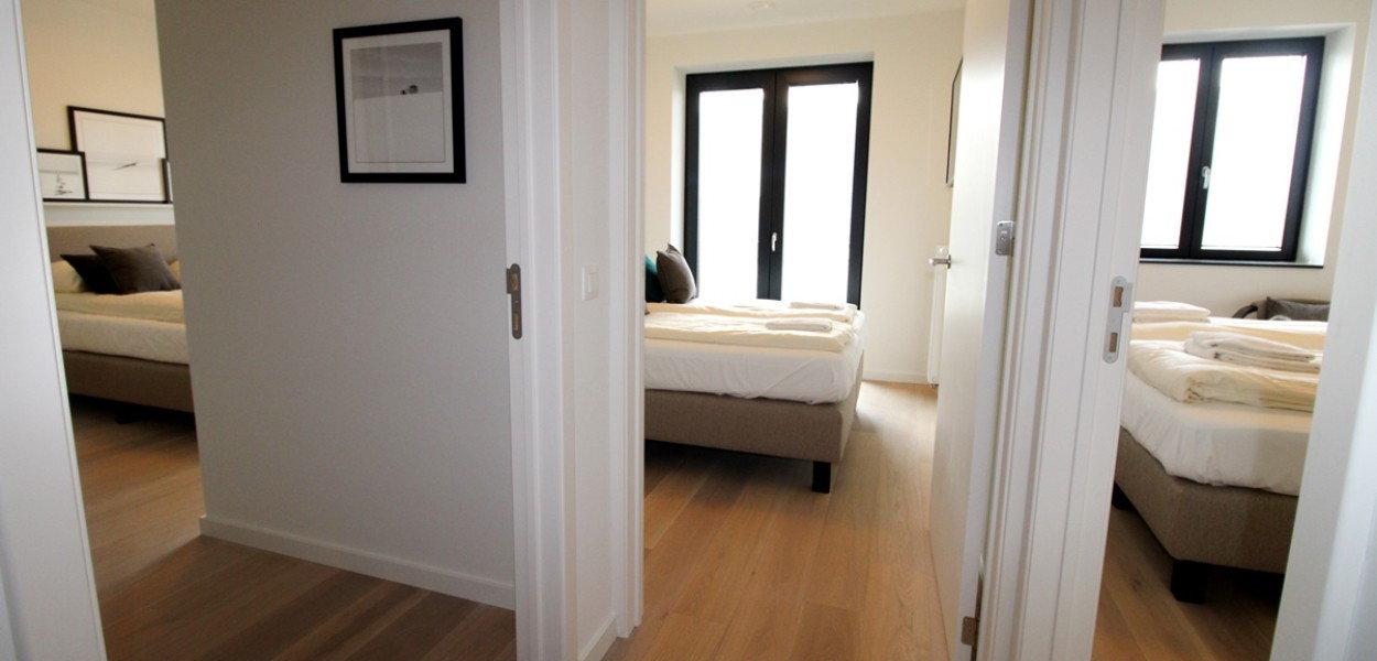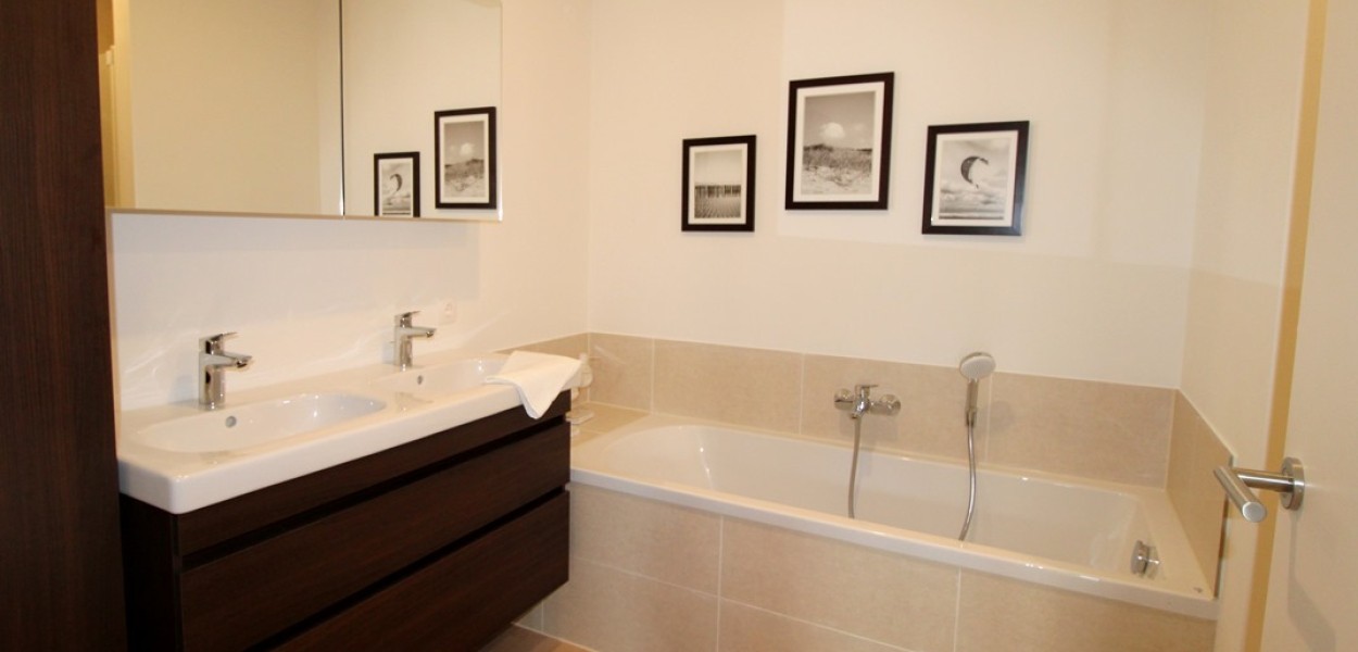 In alle slaapkamers slaapt u op luxe boxspring combinaties, er is in elke kamer ook voldoende kastruimte beschikbaar. De badkamer bij de masterbedroom beschikt over een ligbad, een douche, een dubbele wastafel en een toilet. De tweede badkamer is ingericht met een inloopdouche en een wastafel. Een apart gastentoilet bevindt zich in de hal evenals een praktische berging met daarin onder meer een wasmachine.