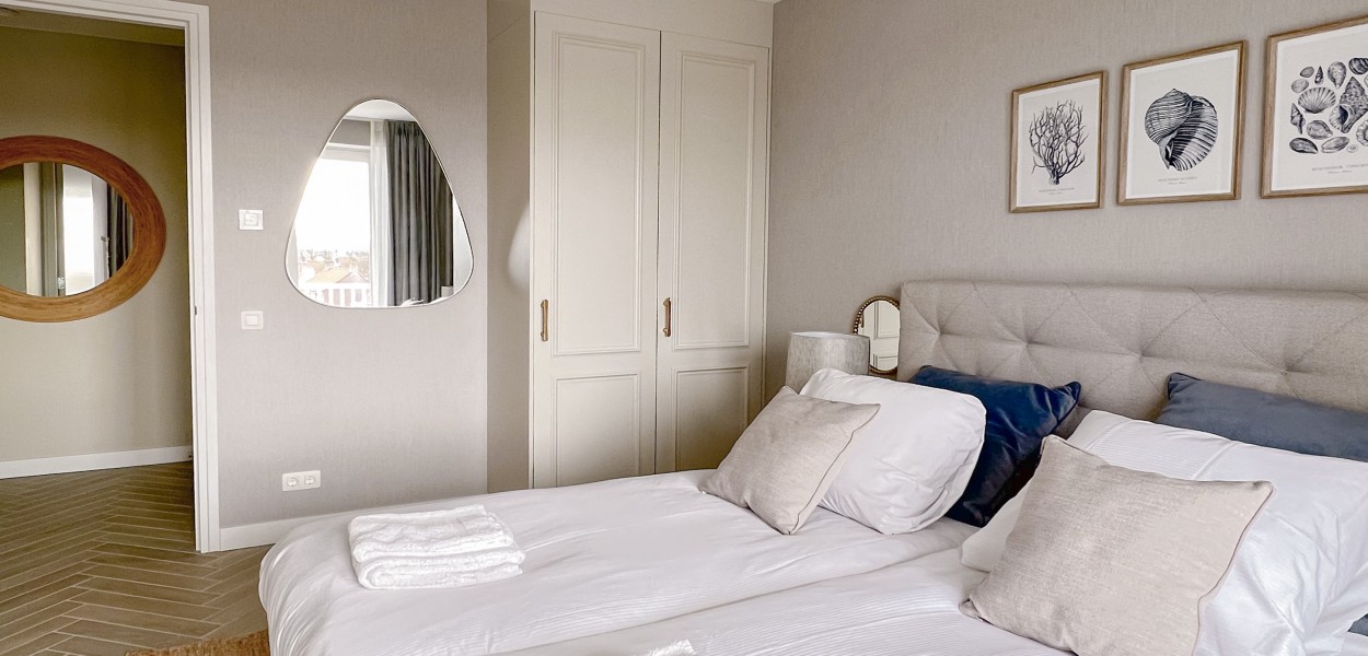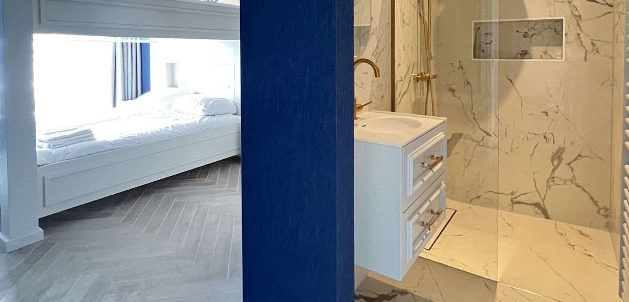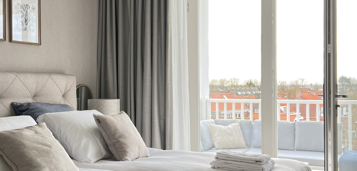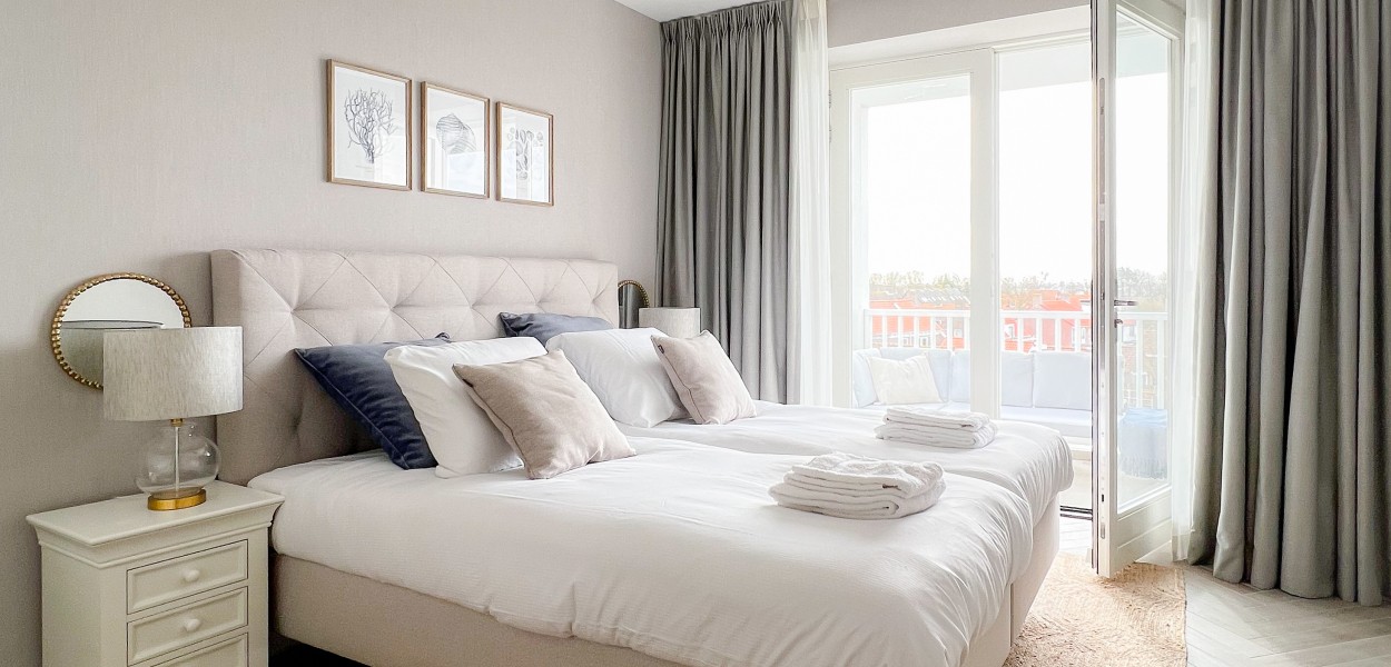 De drie comfortabele slaapkamers liggen aan de achterzijde en hebben een zonnig op het zuiden gelegen balkon van maar liefst 2.80 m diep.Twee van de drie slaapkamers zijn elegant ingericht met luxe boxspringcombinaties die garant staan voor een goede nachtrust. De derde slaapkamer is voorzien van een tweepersoons stapelbed. De master-bedroom is voorzien van een en suite badkamer, een tweede badkamer is op de gang gelegen. Beide badkamers beschikken over een inloopdouche en een wastafel. In de grootste badkamer is een heerlijk ligbad en een extra toilet voorzien, een individueel toilet bevindt zich in de hal. Na een lange wandeling langs het strand kun je nagenieten in de sauna. In de berging staat onder andere een wasmachine en een wasdroger tot je beschikking.
