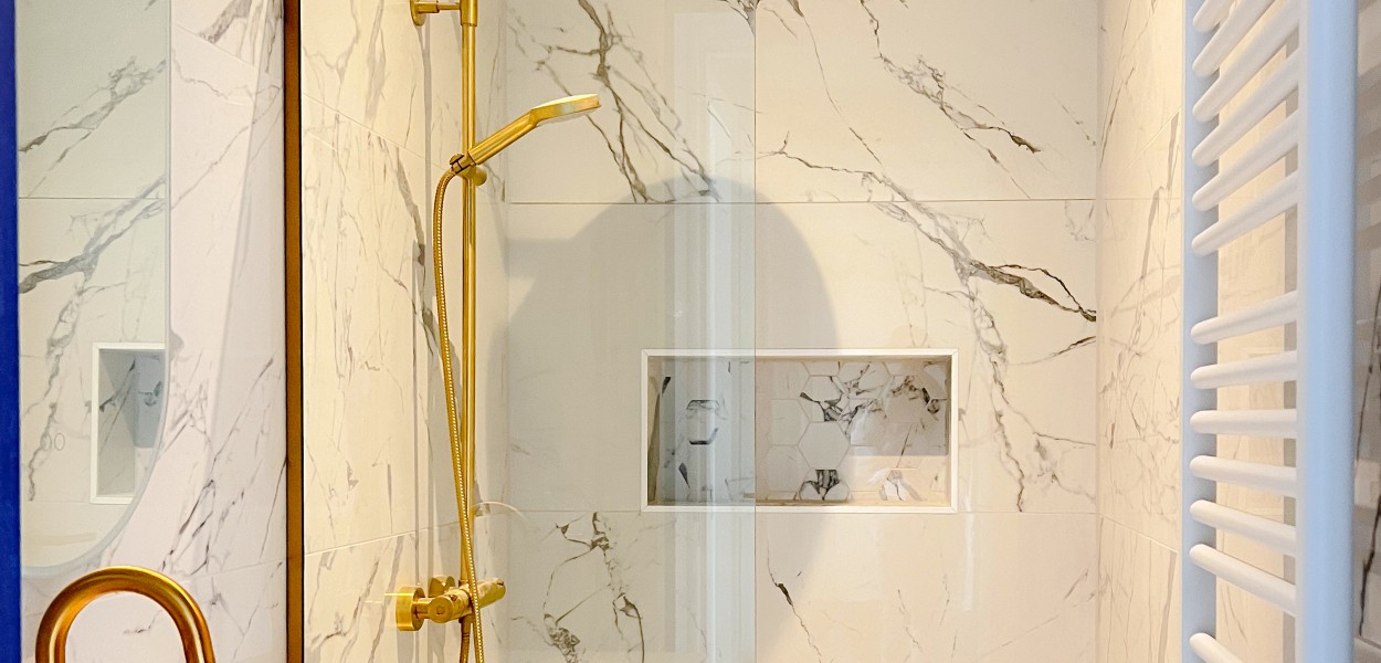 - 1 badkamer met douche en wastafel
