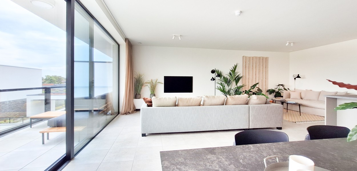 Een heerlijk ruim appartement van 100m² op de eerste verdieping in een splinternieuw complex aan de duinrand. Vanuit de woonkamer kijk je uit over het zonnige terras van 15m². Dankzij de fraaie inrichting en vloerverwarming voelt de woning meteen comfortabel aan. In combinatie met de twee slaapkamers en een badkamer biedt dit appartement je werkelijk alles wat je nodig hebt voor een heerlijk comfortabel verblijf in Cadzand-Bad in elk jaargetijde. De ligging direct aan de duinen zorgt ervoor dat je zo in de natuur bent en het strand opstapt.