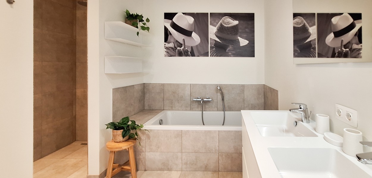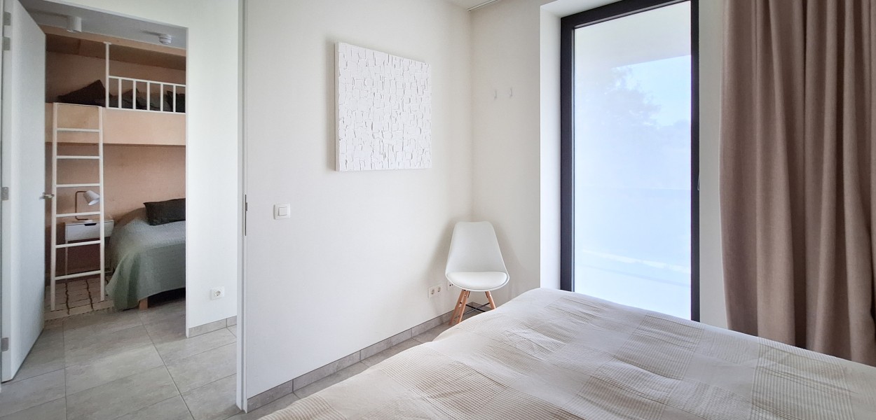 Twee comfortabele slaapkamers liggen aan de voorzijde waar het in de zomermaanden heerlijk koel is. Eén slaapkamer is elegant ingericht met een luxe boxspringcombinatie die garant staat voor een goede nachtrust. De tweede slaapkamer is voorzien van een tweepersoonsbed en een extra slaapplaats op een kleine vide (als extra bij te boeken tegen betaling). De badkamer is voorzien van een ligbad, een douche en een dubbele wastafel. Een gastentoilet bevindt zich in de hal. In de berging staat onder andere een wasmachine en een wasdroger tot je beschikking.