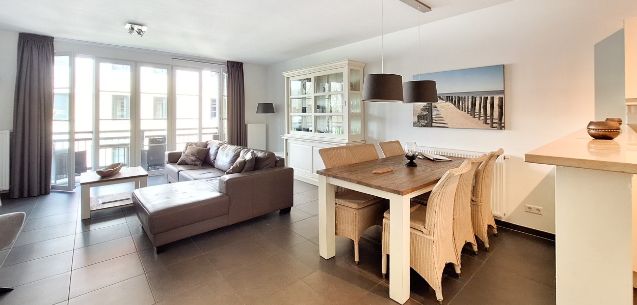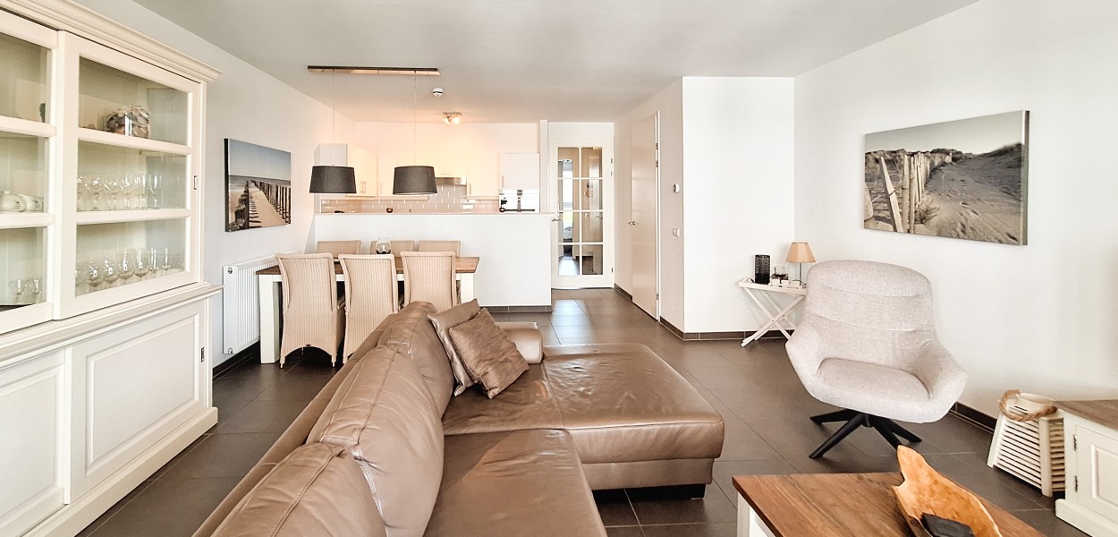 De ruime, open keuken is voorzien van een uitgebreide inventaris met een Senseo-machine, combimagnetron, koel-vriescombinatie en afwasmachine en staat direct in verbinding met de sfeervolle woonkamer. Dit appartement is van alle gemakken voorzien en biedt de ideale uitvalsbasis voor een verblijf aan de Zeeuwse kust.