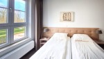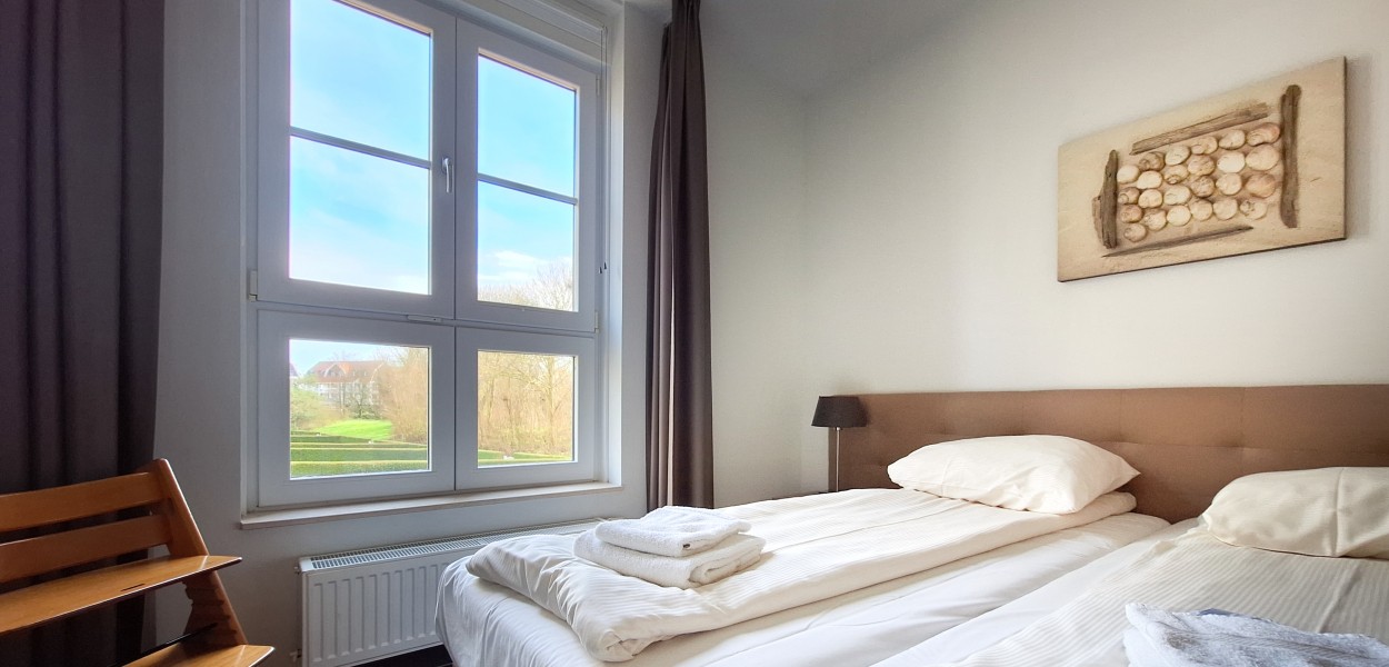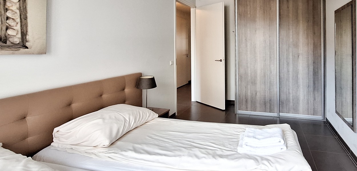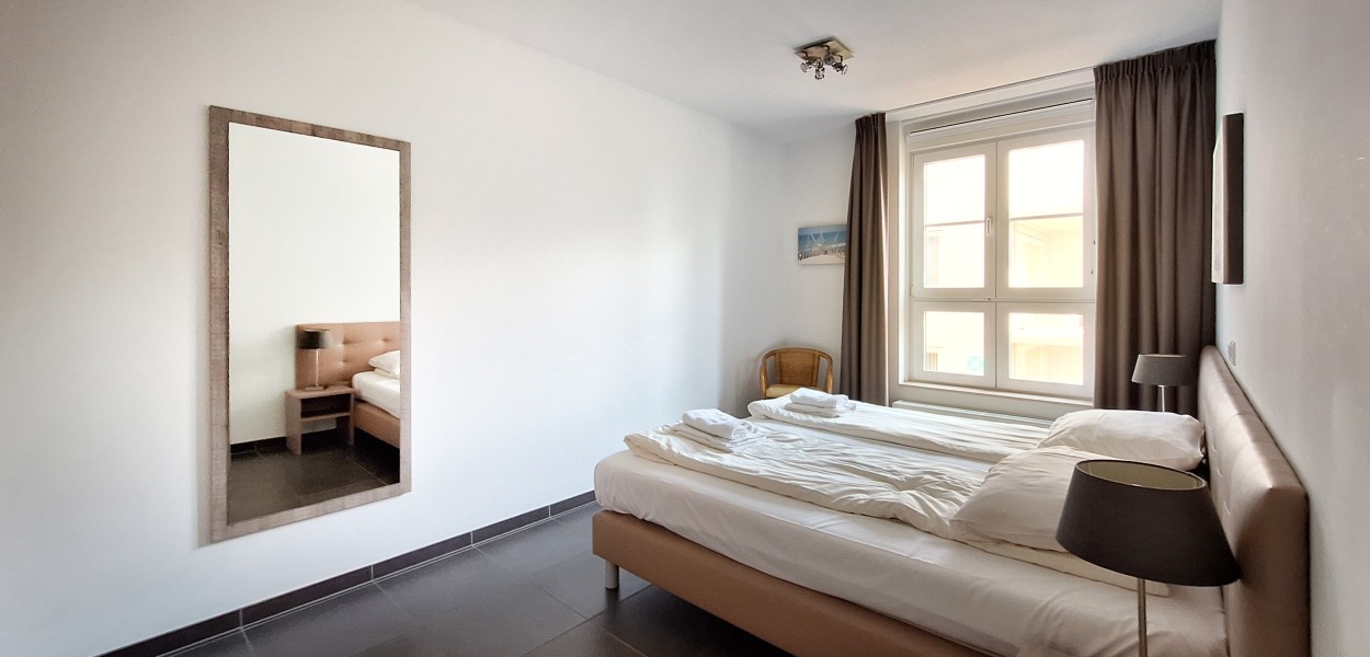 De beide slaapkamers van de woning zijn elegant en volledig ingericht. U slaapt op luxe boxspringcombinaties. In de masterbedroom is er tevens genoeg extra ruimte voor bijvoorbeeld een babybedje. De ruime en lichte badkamer is ingericht met een comfortabele douche, een wastafel en een toilet. In de hal bevindt zich een extra toilet evenals een praktische berging waar u de wasmachine en droger aantreft.