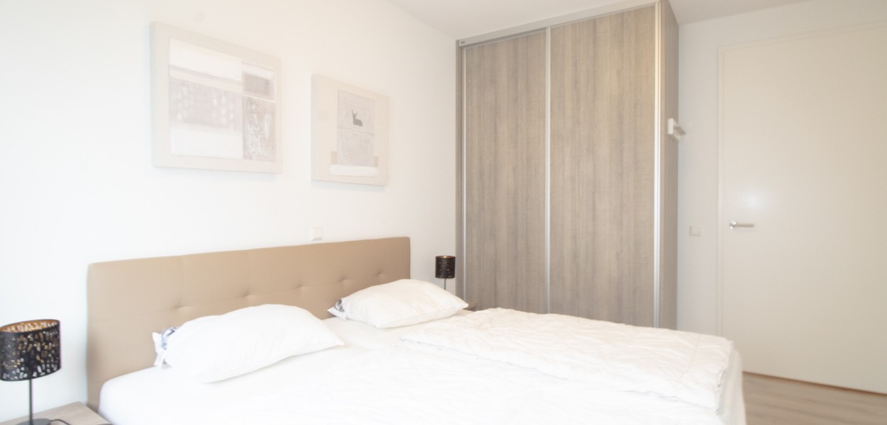 Een royaal en sfeervol hoekappartement van 100m² op de tweede verdieping. Met drie comfortabele slaapkamers en twee badkamers is dit appartement uitermate geschikt voor het hele gezin. De openslaande deuren in de woonkamer geven toegang tot het grote balkon met plezierig uitzicht over de boulevard en het pleintje. U geniet hier optimaal van de avondzon. Bij het huren van dit appartement is het tevens mogelijk om op aanvraag gebruik te maken van de 2e parkeerplaats in de parkeergarage.