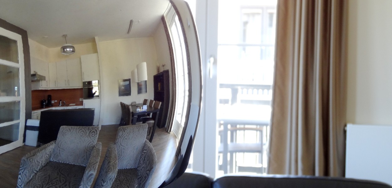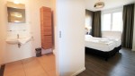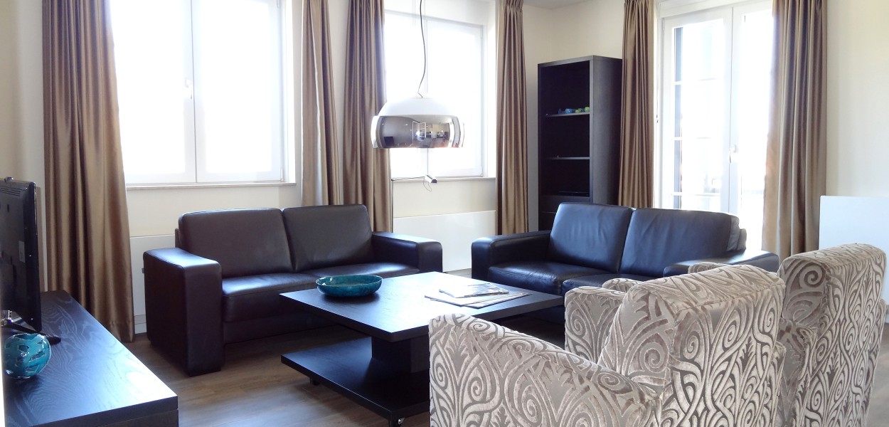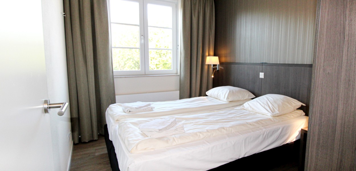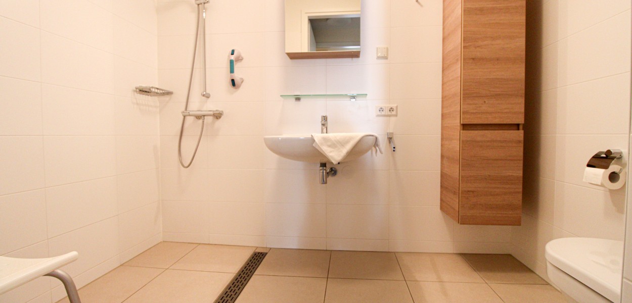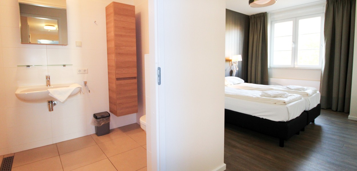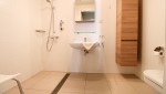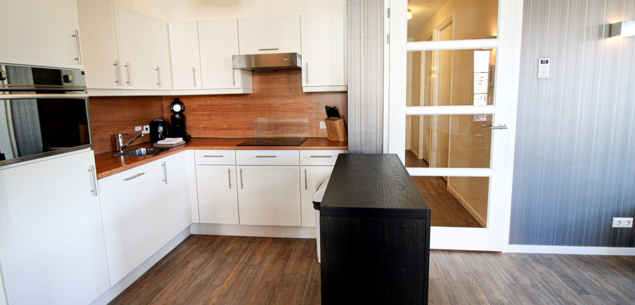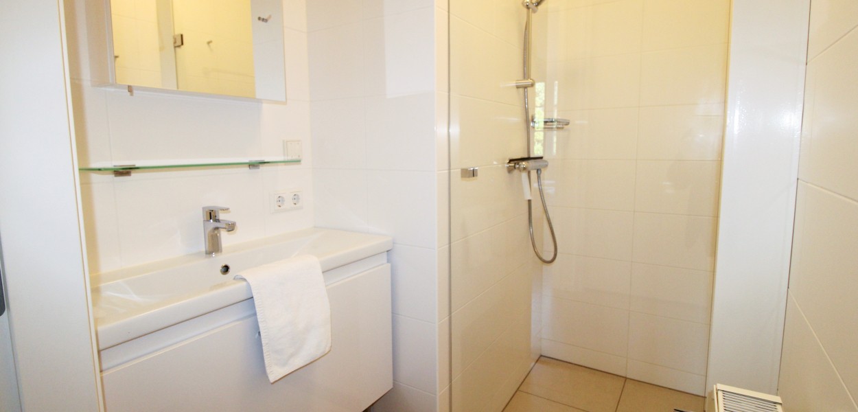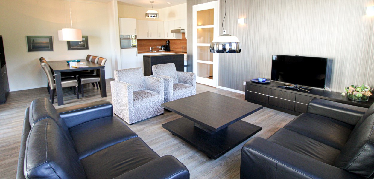De woonkamer is voorzien van een gezellige, comfortabele zithoek met televisie (inclusief Basis pakket) en Blu-ray DVD speler en grenst direct aan het eetgedeelte met grote eettafel en de keuken. De open keuken is voorzien van een Senseo apparaat, combimagnetron, koelkast, vriezer en afwasmachine. In het hele appartement zijn geen drempels waardoor de ruimtes naadloos op elkaar aansluiten. De drie slaapkamers zijn zeer volledig ingericht en bieden voldoende opbergruimte. In de twee masterbedrooms slaapt u op luxe boxspringcombinaties met extra lange matrassen van maar liefst 2.10m, de derde slaapkamer is ingericht met een solide stapelbed en heeft een handig bureau. In beide badkamers vindt u een comfortabele inloopdouche en een wastafel. De badkamer grenzend aan de grootste slaapkamer beschikt over een iets verhoogd toilet en een handbeugel in de douche waardoor mindervaliden er makkelijker gebruik van kunnen maken. Een apart toilet bevindt zich in de hal evenals een praktische berging met een wasmachine én een droger.