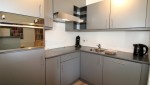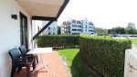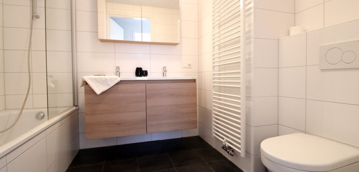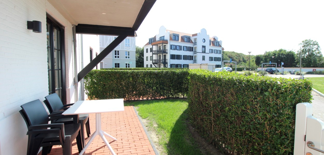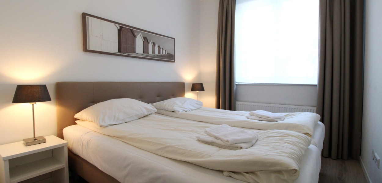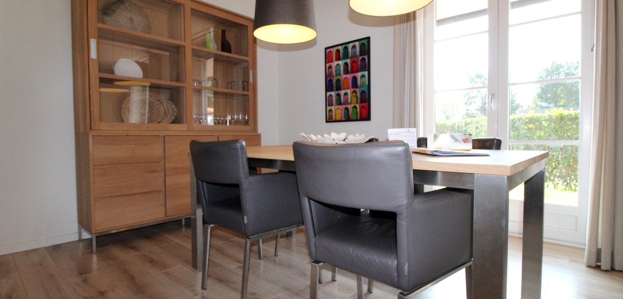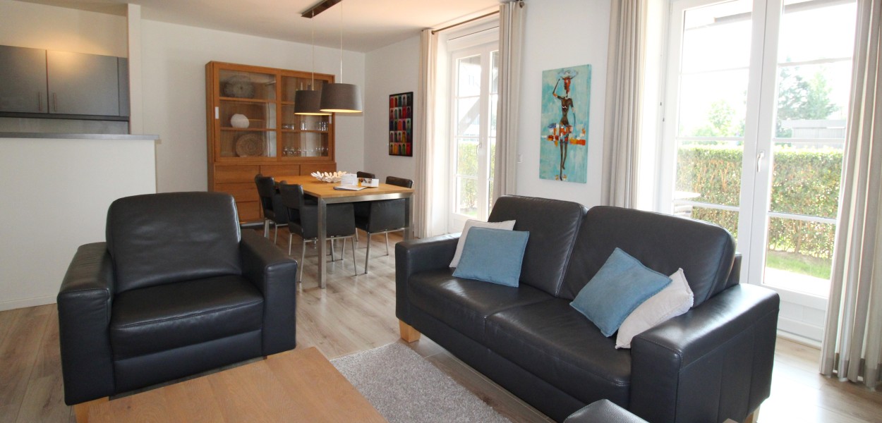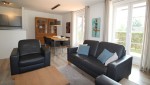 De open keuken is onder andere voorzien van een combimagnetron, koel-vriescombinatie, Senseo-apparaat en een afwasmachine. De ruime eettafel verbindt de keuken met de woonkamer waar u kunt ontspannen in een van de comfortabele zetels. Met de openslaande deuren naar de zonnige tuin en de ligging dicht bij de bedrijvigheid op de boulevard is dit een plezierig vakantie appartement.