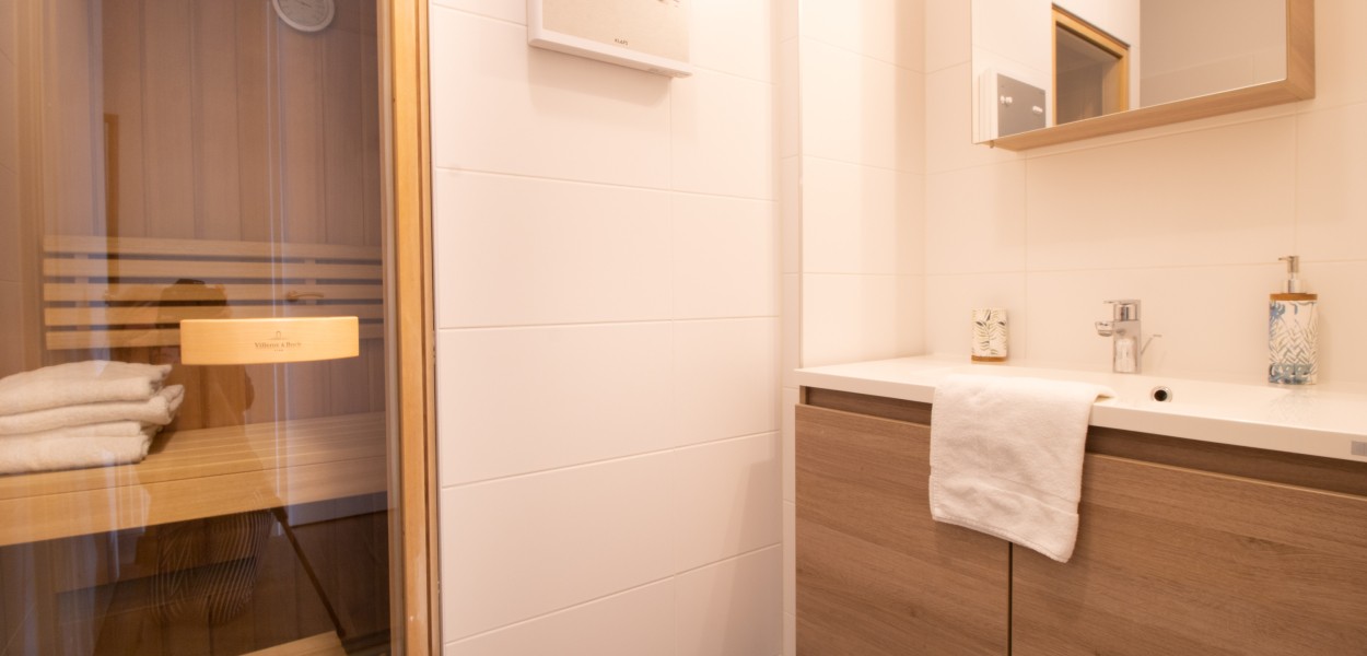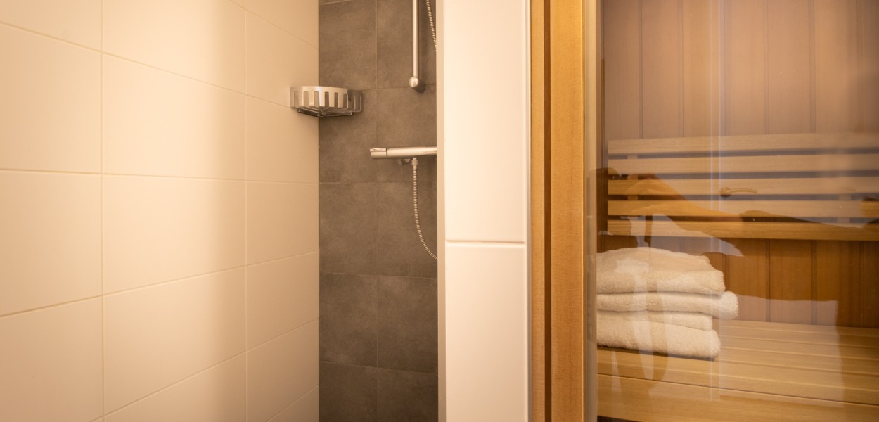 De masterbedroom van deze woning is elegant en compleet ingericht, u slaapt op een luxe boxspringcombinatie. In de tweede slaapkamer treft u twee comfortabele eenpersoonsbedden met onderschuifcombinatie waardoor u eventueel meer plaats kunt creëren. Als extra hebben beide slaapkamers een TV. In de badkamer vindt u een Finse sauna, goed voor uw hart en huid. Verder biedt de badkamer een inloopdouche en wastafel. Een apart toilet bevindt zich in de hal evenals een handige berging met was-droogcombinatie.