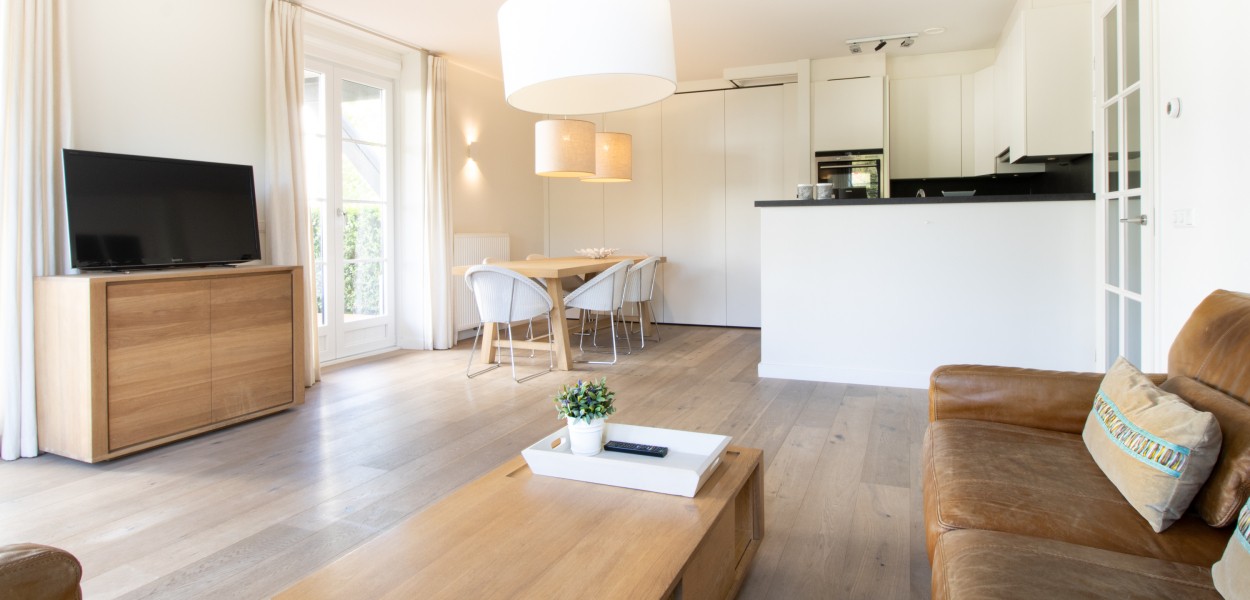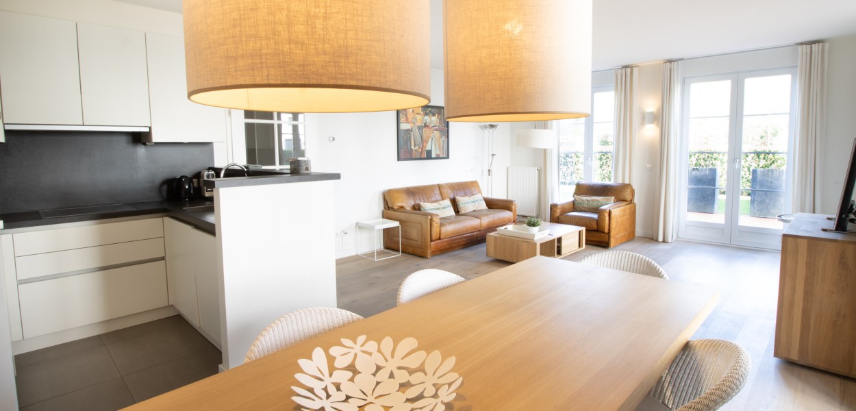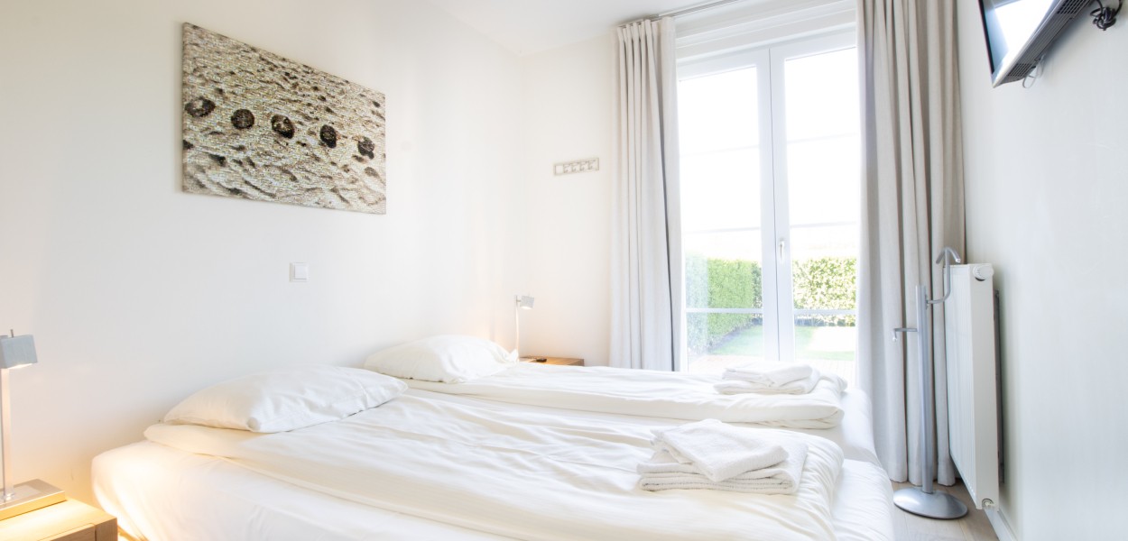 Een comfortabel ingericht, gelijkvloers appartement van 79m² met een grote, zonnige tuin en terras. De driepersoons infrarood sauna, extra lange bedden en TV op de slaapkamers maken het appartement erg comfortabel. Wanneer u eens geen televisie wilt kijken, kunt u genieten van de leesboeken en spelletjes die in de woning aanwezig zijn. Uw hond is in dit appartement welkom.