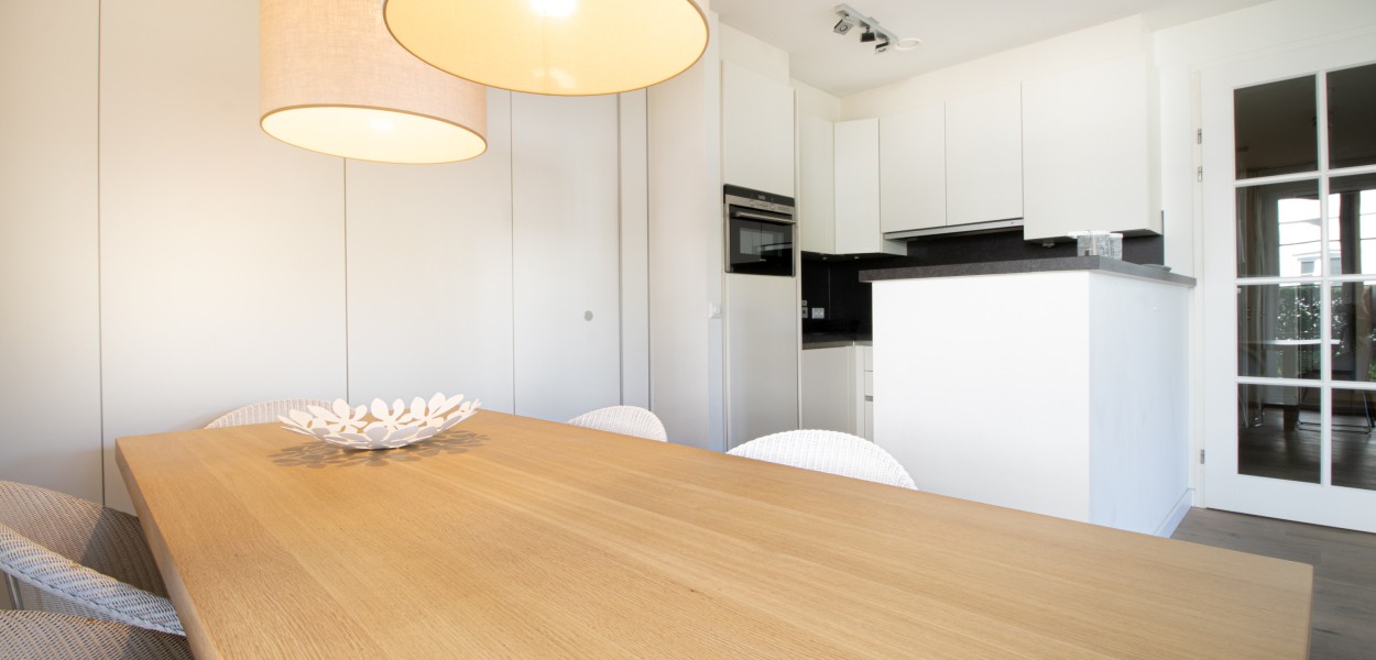 De compleet ingerichte open keuken en openslaande deuren naar de zonnige tuin voegen extra leef comfort toe aan de sfeervolle woonkamer. De open keuken is voorzien van een combimagnetron, koel-vriescombinatie, Senseo-machine, Nespresso apparaat en een afwasmachine. Nog een extra aan deze woning is dat u deze woning kunt samen voegen met appartement I - 04 welke hiernaast gelegen is, deze middels een schuifsysteem die open kan.