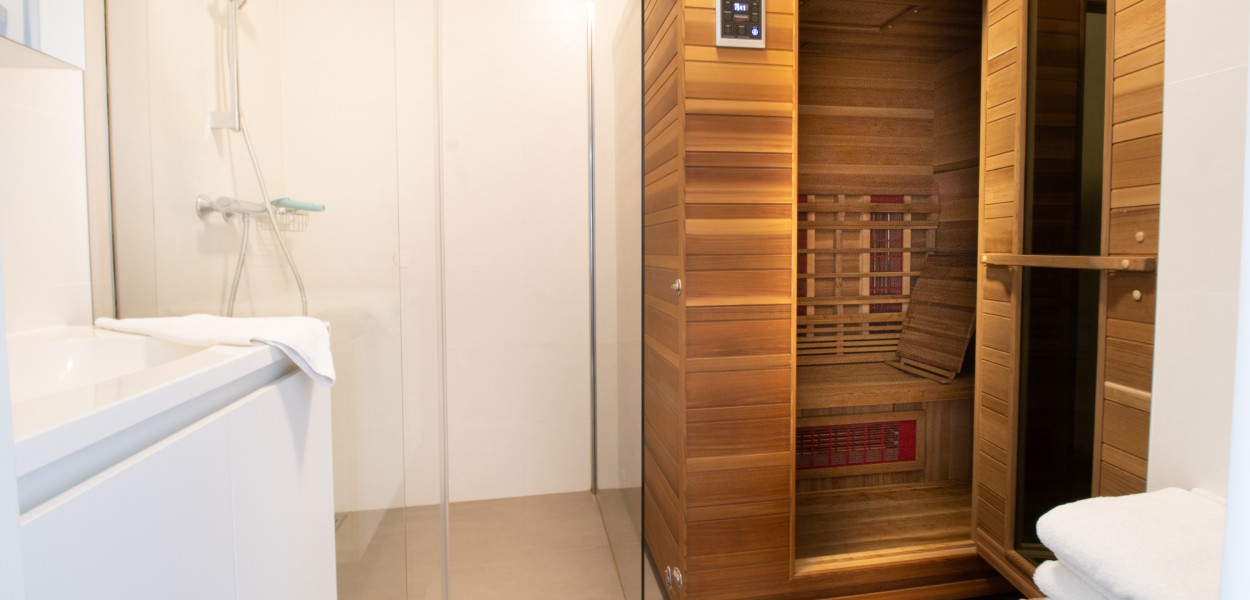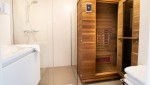 De slaapkamers van deze woning zijn elegant en compleet ingericht met TV. De luxe boxspringcombinaties hebben een lengte van 2.10m. In de badkamer vindt u een driepersoons infrarood sauna met als mogelijkheid een kleurentherapie. De badkamer is verder voorzien van een inloopdouche en een wastafel. Een apart toilet vindt u in de hal evenals een praktische berging met wasmachine en droger.