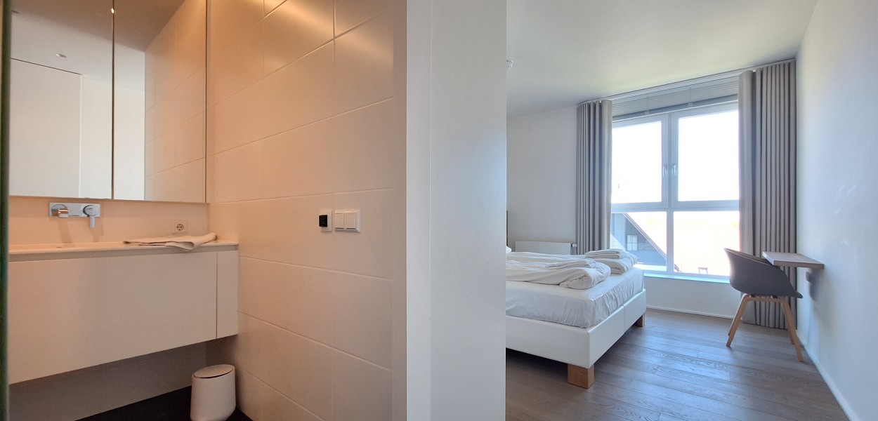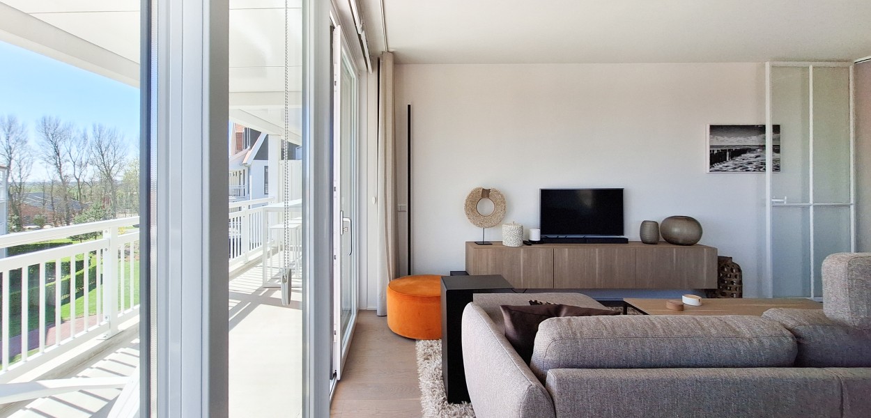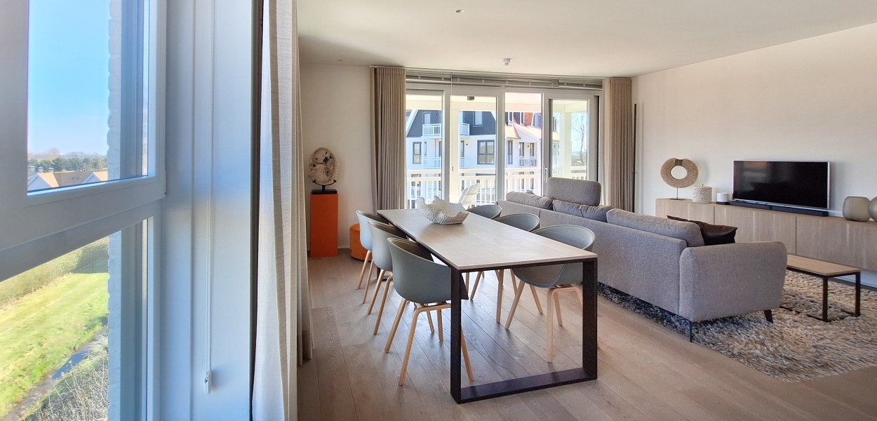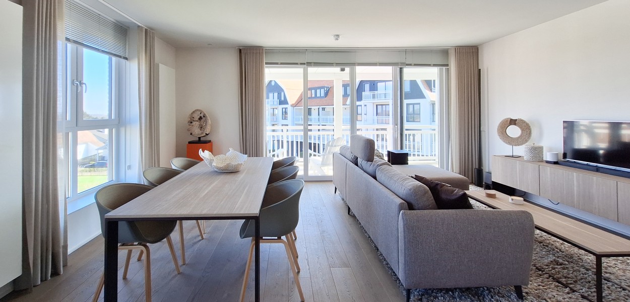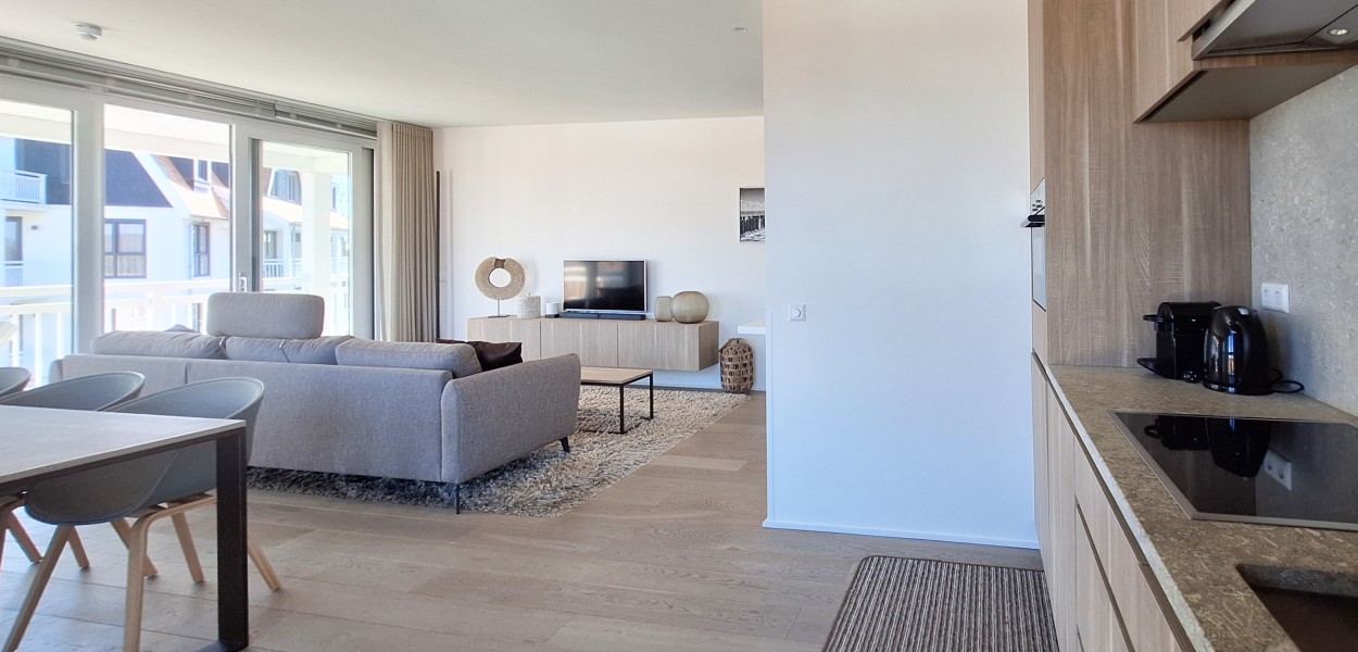 In het woongedeelte vindt u het comfortabele salon met tv en een eetgedeelte met een gezellige eettafel. Aansluitend is de luxe keuken welke van alle gemakken is voorzien. Deze bevat onder andere een Nespresso-apparaat, een inductiekookplaat, combimagnetron, koelkast met vriesvak en een afwasmachine. Middels de tuindeuren heeft u toegang tot het zonnige balkon welke op het zuiden is gelegen en waarvandaan u een fantastisch uitzicht heeft en tot Cadzand-dorp kunt kijken. De beide slaapkamers zijn sfeervol en compleet ingericht met comfortabele boxspringcombinaties. In de masterbedroom is een en suite badkamer met een ruime inloopdouche, een wastafel en een toilet. De tweede badkamer heeft een eigen wastafel en eveneens een inloopdouche. Een apart toilet bevindt zich in de hal, evenals een praktische berging met daarin onder andere de wasmachine en droger.