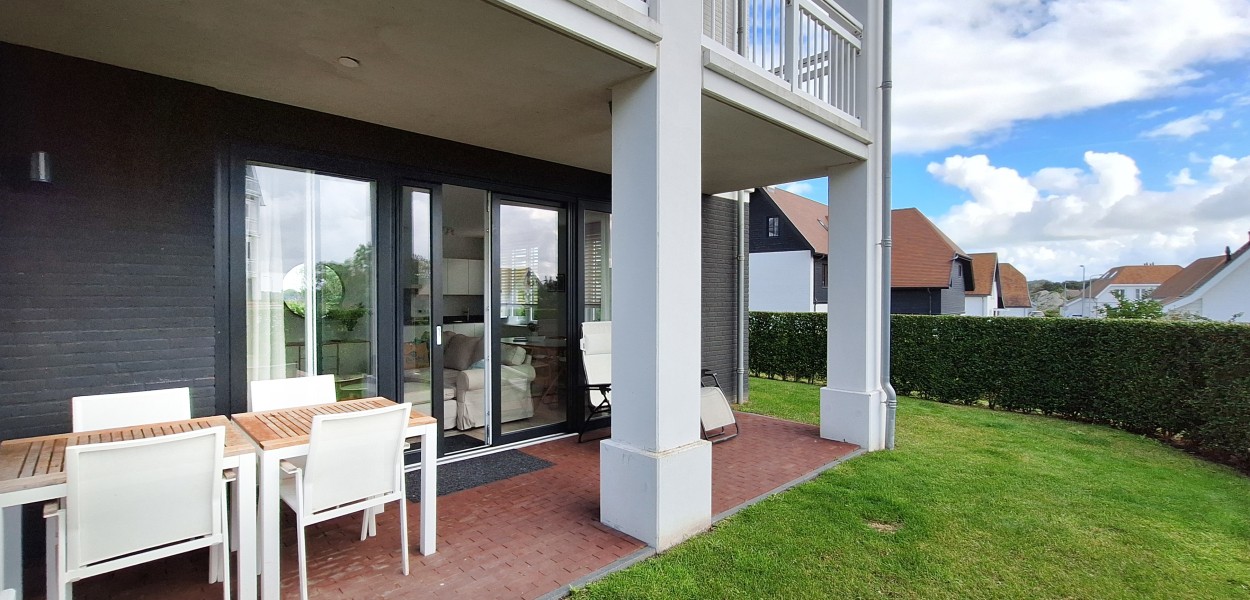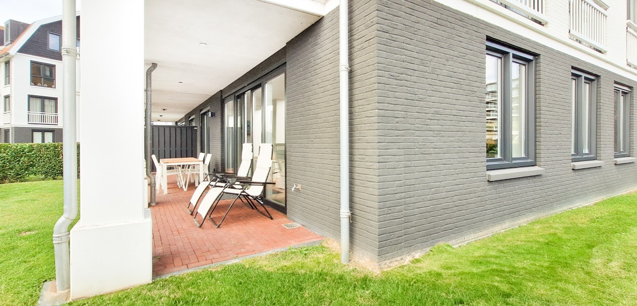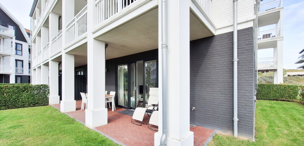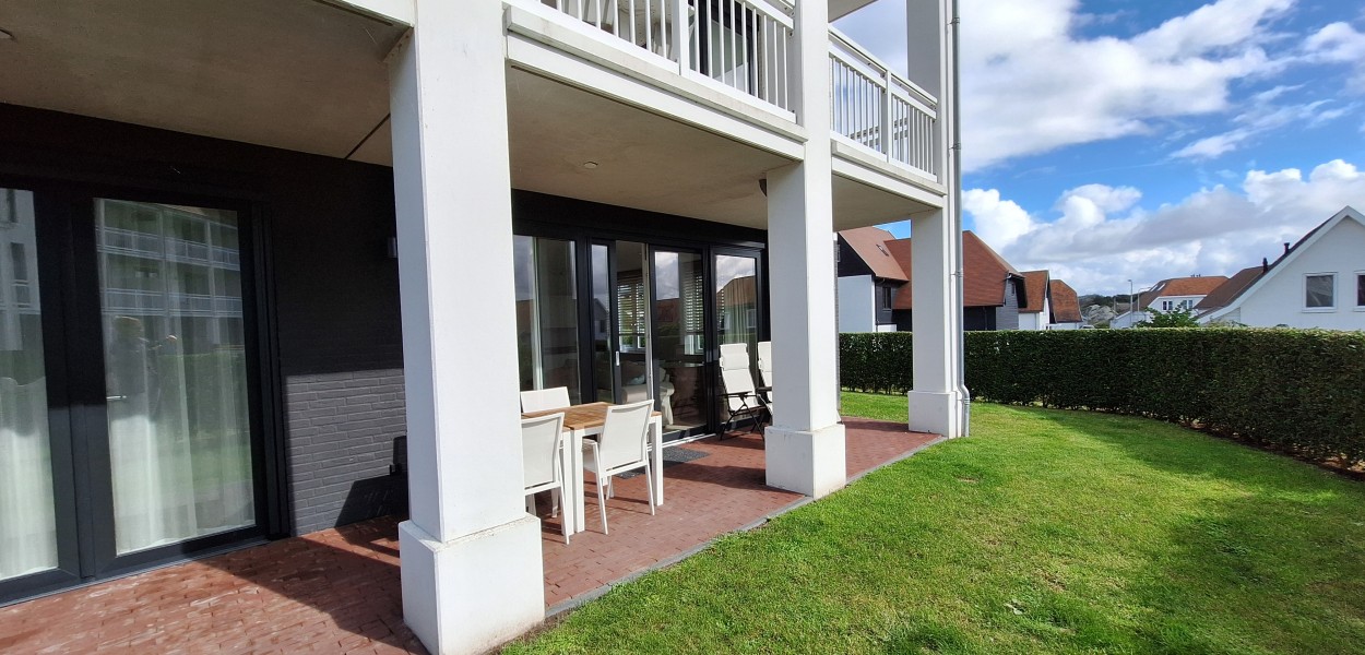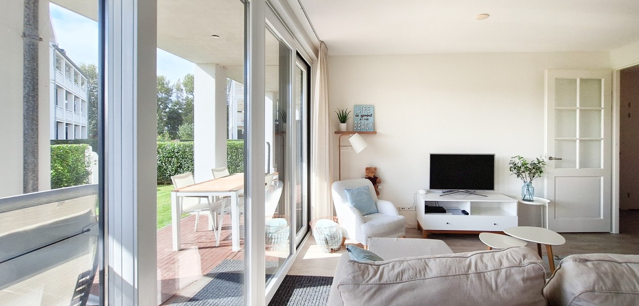 Dit zuidelijk gelegen hoekappartement biedt alles wat u nodig heeft voor een heerlijke gezinsvakantie, zeker met de extra ruimte die de tuin u biedt.