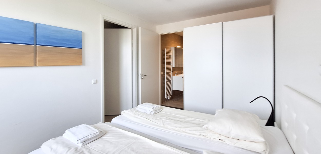In de masterbedroom slaapt u op een luxe boxspringcombinatie en heeft u een en suite badkamer met een ligbad, een dubbele wastafel en een toilet. Ook de tweede slaapkamer is voorzien van een comfortabele boxspringcombinatie en heeft een en suite badkamer met inloop regendouche en een wastafel. De derde slaapkamer heeft een solide stapelbed, de derde badkamer is aan de overkant van de hal en voorzien van een inloopdouche en een wastafel. Een apart toilet bevindt zich ook in de hal, evenals een praktische berging met daarin onder meer een wasmachine en droger.