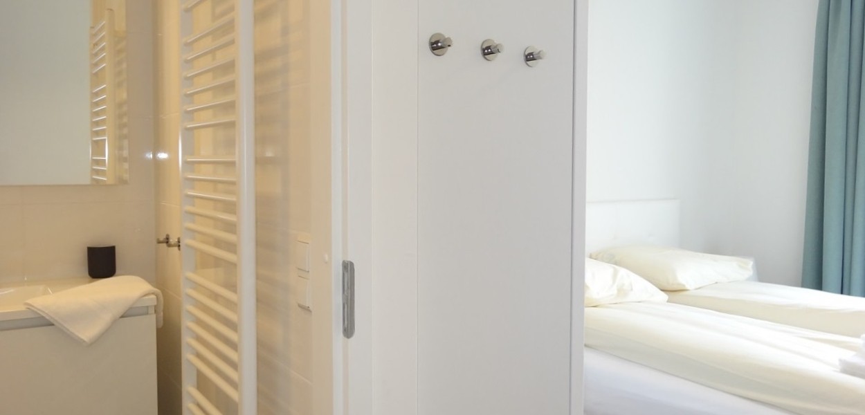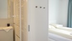 De woonkamer is voorzien van een comfortabel zitgedeelte en een gezellig eetgedeelte. Daarop aansluitend is een sfeervolle open keuken, welke is voorzien van een Nespresso-machine, inductiekookplaat, een combimagnetron, een koelkast en een afwasmachine. De beide slaapkamers zijn elegant ingericht met luxe boxspringcombinaties. In de tweede slaapkamer is een nog een extra opklapbed voorzien waardoor in dit appartement plaats is voor een logé. Hou er echter rekening mee dat hiervoor geen beddengoed is voorzien. De twee badkamers, beide en suite, zijn elk verschillend ingericht. Eén badkamer beschikt over een inloopdouche en een dubbele wastafel alsook een toilet, de ander is ingericht met een inloopdouche en enkele wastafel. Een apart toilet bevindt zich in de hal, evenals een praktische berging met een wasmachine, droger en vriezer.