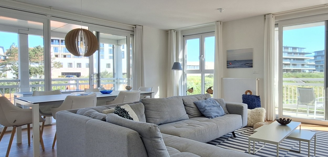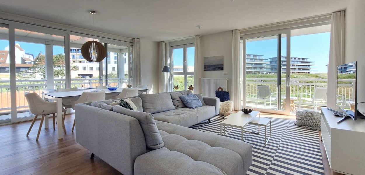 Een zeer prettig en licht hoekappartement van 89m² op de tweede verdieping. Dankzij de twee balkons heeft u een heerlijk weids uitzicht op de duinen.