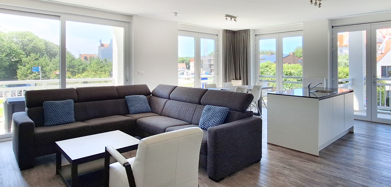 Een zeer ruim en comfortabel hoekappartement van 108m² op de eerste verdieping met een weids uitzicht over Cadzand-Bad dankzij de ruime balkons aan beide gevels. Een parkeerplaats is voorzien in de ondergrondse parkeergarage.