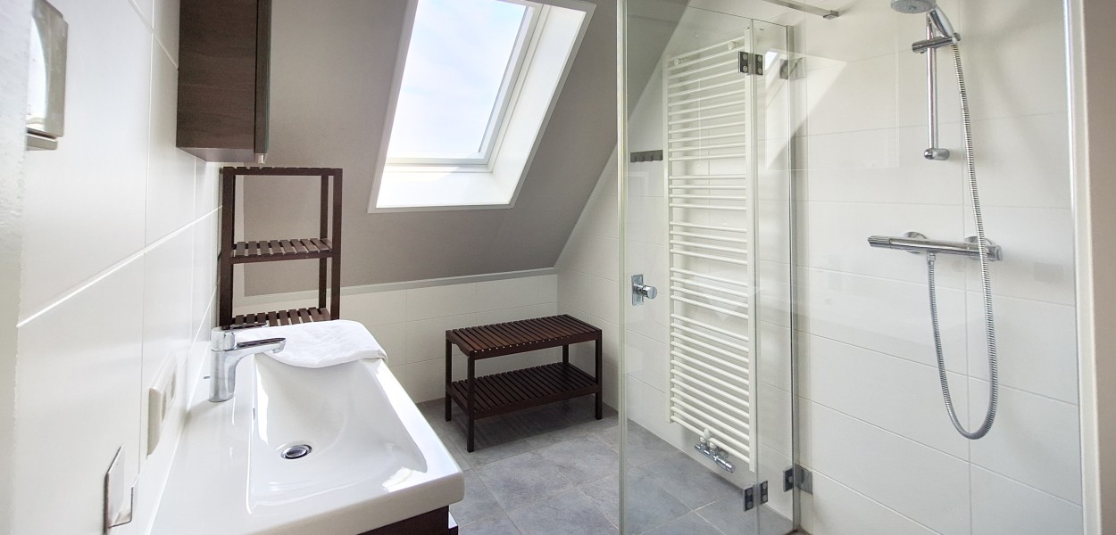 De ruime masterbedroom is compleet ingericht met onder andere een luxe boxspringcombinatie. Er is eventueel genoeg ruimte voor een extra campingbedje. Vanuit de slaapkamer heeft u een weids zicht over de omgeving. In de tweede slaapkamer staan twee eenpersoonsbedden en een garderobekast. De badkamer is ingericht met een ruime inloopdouche en wastafel en beschikt over een dakraam. Een apart toilet bevindt zich in de hal. In de praktische berging vindt u onder andere een wasmachine en droger.