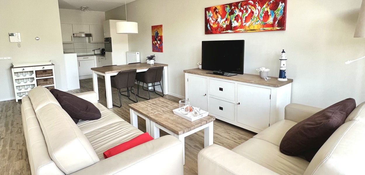De open keuken is voorzien van een Nespresso apparaat, combimagnetron, koel-vriescombinatie en een afwasmachine. De eigenzinnig ingerichte en moderne woonkamer, luxe open keuken en openslaande deuren naar het balkon zorgen voor een geheel eigen stijl. Op verzoek van de eigenaar zijn in dit appartement enkel volwassenen toegestaan, waardoor het uitermate geschikt is voor een ontspannen vakantie met z'n tweetjes.