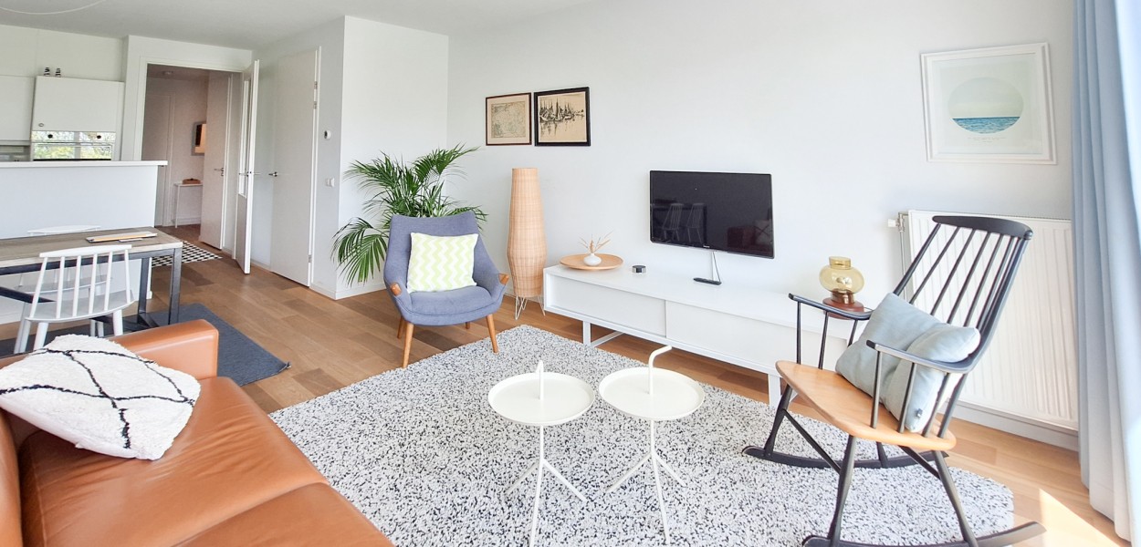 Een rustig en stijlvol ingericht appartement van 80m² op de derde verdieping. Grote schuiframen geven toegang tot het binnenbalkon op het zuiden met vrij uitzicht op de omgeving en de hele dag zon. In dit appartement bevindt zich tevens een tandem in de fietsenberging nabij uw gereserveerde parkeerplaats.