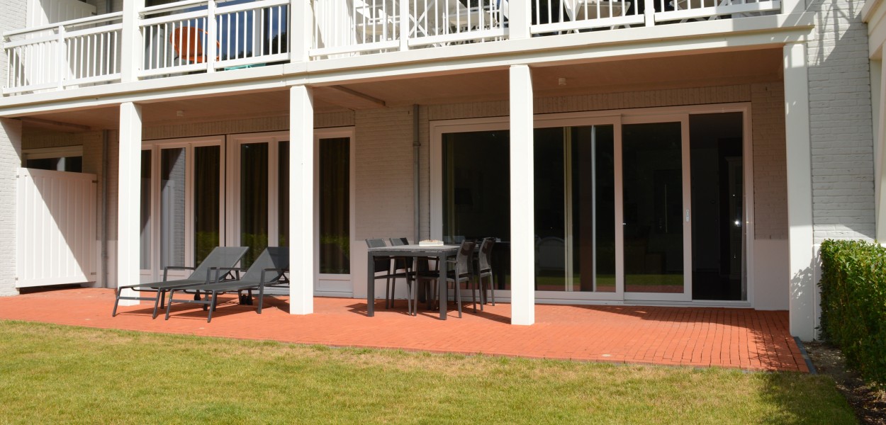 Een zonnig en ruim gelijkvloers appartement van 96m², aan de achterzijde van Duinhof VI. Deze woning is zeer rustig gelegen. U vindt zowel in de woonkamer als in de masterbedrooms openslaande deuren naar de op het zuiden gelegen tuin met royaal terras.