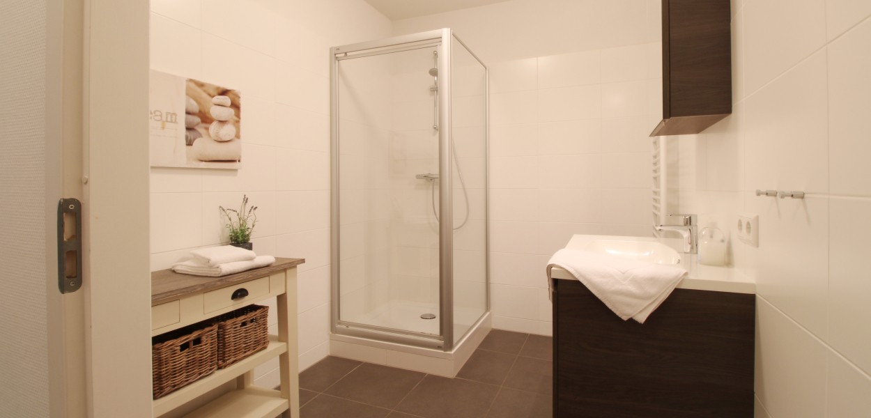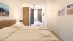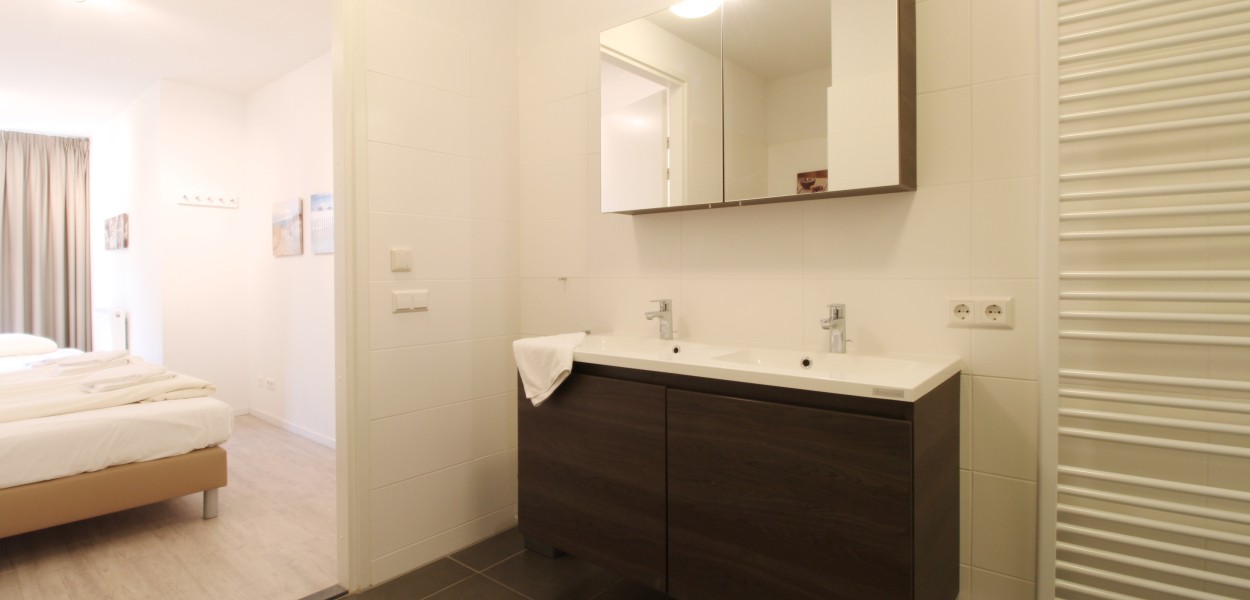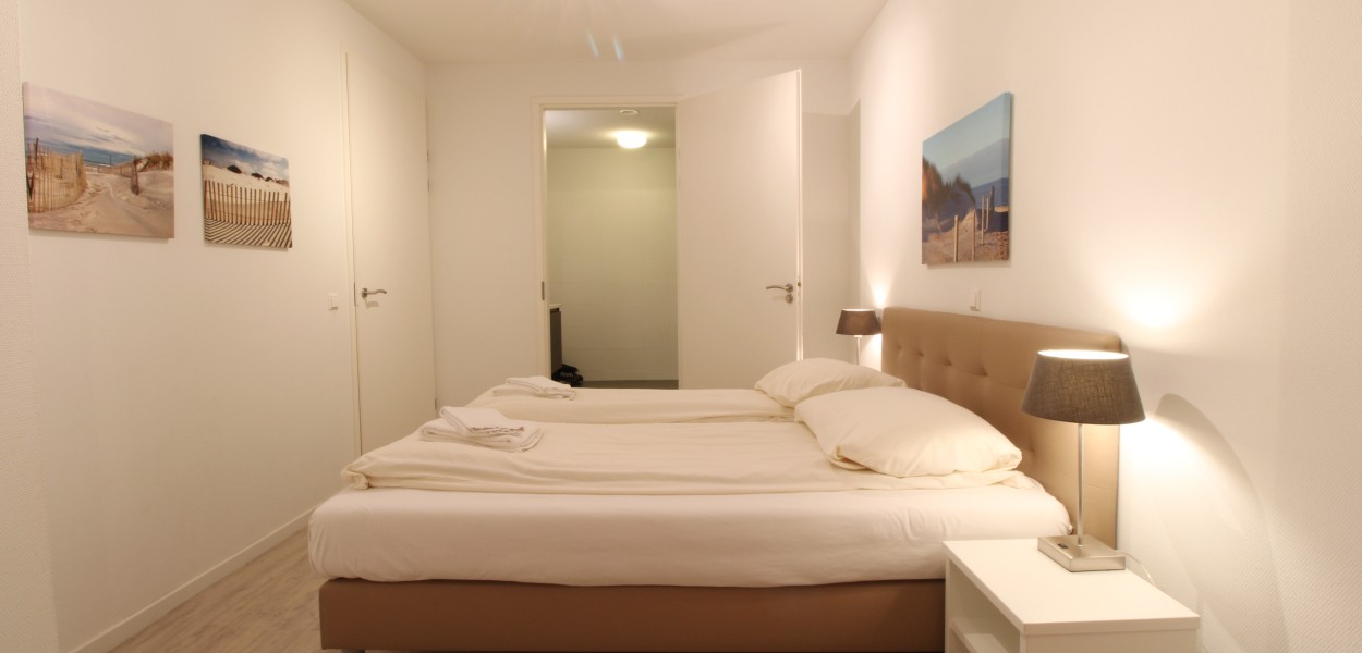 De beide slaapkamers zijn elegant en sfeervol ingericht. In de zonnige en lichte slaapkamers slaapt u op een luxe boxspringcombinatie. In de masterbedroom vindt u het extra bed. Er zijn twee badkamers waarvan er één is uitgerust met een inloopdouche, dubbele wastafel en toilet, deze is en-suite aan de masterbedroom. De tweede badkamer heeft een praktische douche en een wastafel. Een apart toilet bevindt zich in de hal. Het appartement beschikt ook over een praktische berging met een wasmachine en droger.