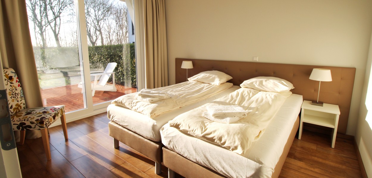 Dit moderne en sfeervolle appartement van 78m² is gelijkvloers en heeft een zeer ruime en rustig gelegen tuin met terras op het zuiden. Vanuit de woon- en slaapkamer stapt u direct de frisse zeelucht in. Uniek aan dit appartement is dat het een extra kinderkamer biedt die voorzien is van een stapelbed, ledikant en commode.