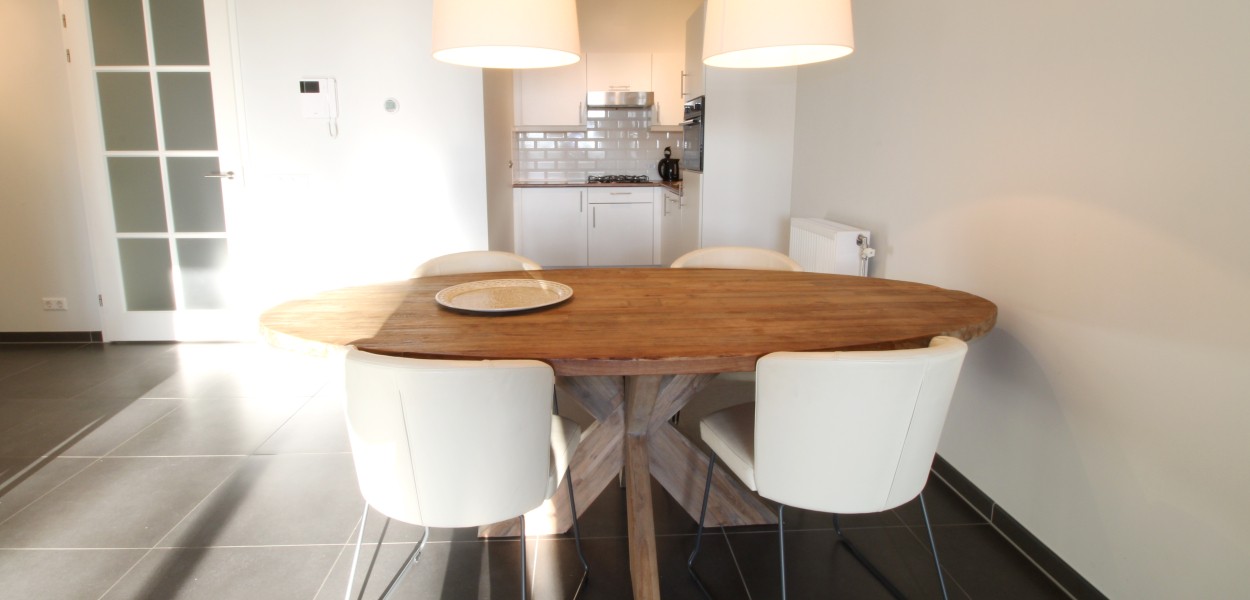 De open keuken is voorzien van een Senseo-apparaat, combimagnetron, koel-vriescombinatie en een afwasmachine en wordt middels de ruime eettafel verbonden met de woonkamer. De combinatie van de ruime woonkamer, open keuken en schuifpui naar de grote tuin, maakt dit een erg aangenaam appartement voor koppels en ouders met jonge kinderen.