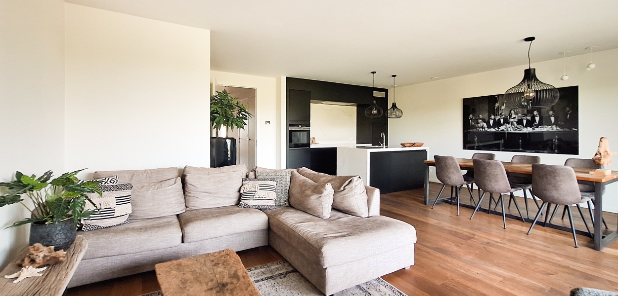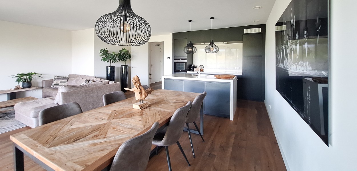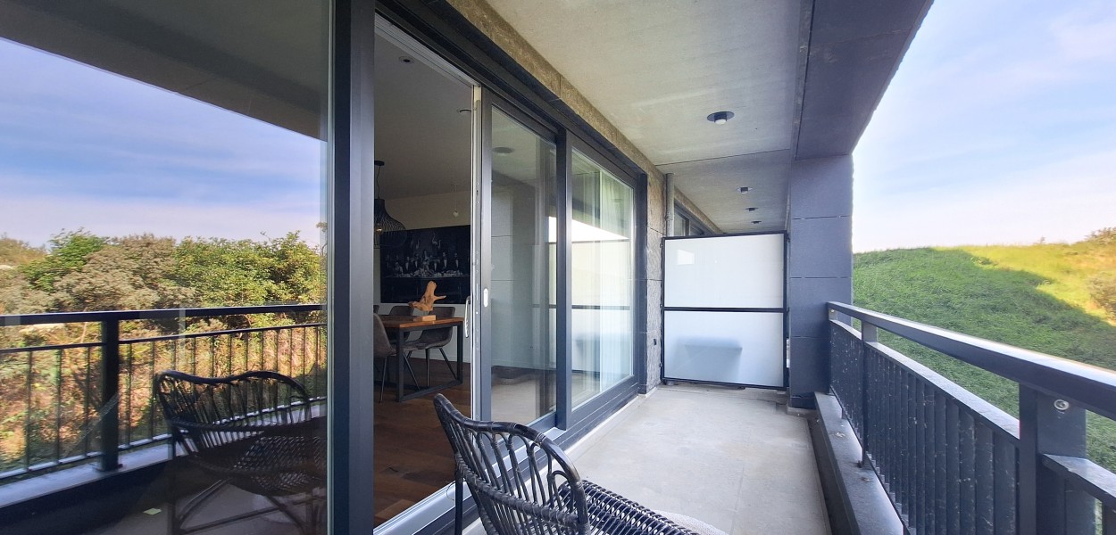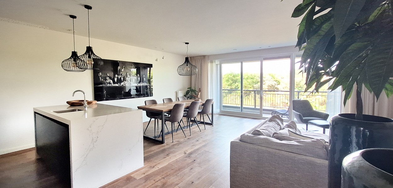 In het woongedeelte is een comfortabel zitgedeelte ingericht met meer dan voldoende zitplaatsen. Er is onder andere een televisie met uitgebreid digitaal zenderpakket. De open keuken is zeer modern en biedt behalve veel bergruimte alle benodigde apparatuur. Naast een inductiefornuis met werkbladafzuiging vindt u er ook een ingebouwde oven en magnetron, een koelkast met een vriesvak, een Nespresso-apparaat en een vaatwasmachine. U kunt urenlang tafelen aan de prachtige eettafel met 6 zitplaatsen in de woonkamer. Dankzij de grote ramen geniet u vanuit de woonkamer én het eetgedeelte van een fantastisch uitzicht over de duinen. Middels de schuifpui betreedt u het balkon dat op mooie dagen eenvoudig bij het woongedeelte kan worden betrokken.