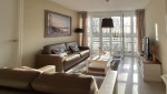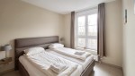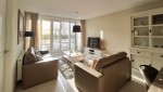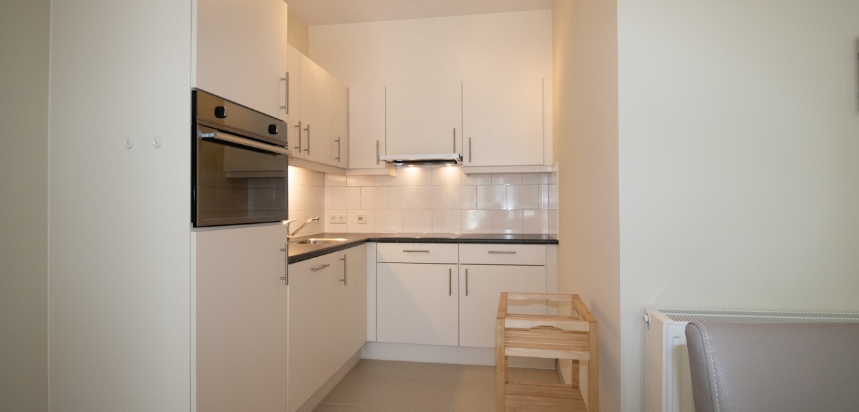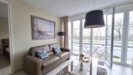 De woonkamer is ruim opgezet met 2 tweezits zitbanken met TV (Basis pakket inbegrepen). Vanuit het zitgedeelte openen de terrasdeuren naar het zuidelijk georienteerde en heerlijk zonnige balkon. Er is een eettafel met 4 stoelen die het woongedeelte met de keuken verbindt. De keuken is onder andere voorzien van een handige combimagnetron, koel-vriescombinatie, Nespresso-apparaat en een afwasmachine.
