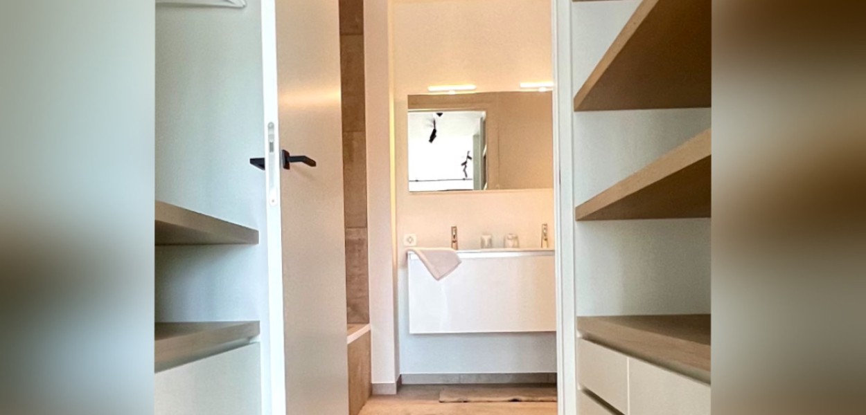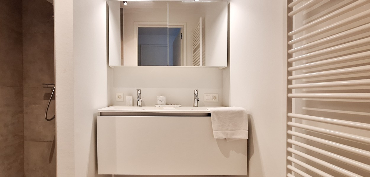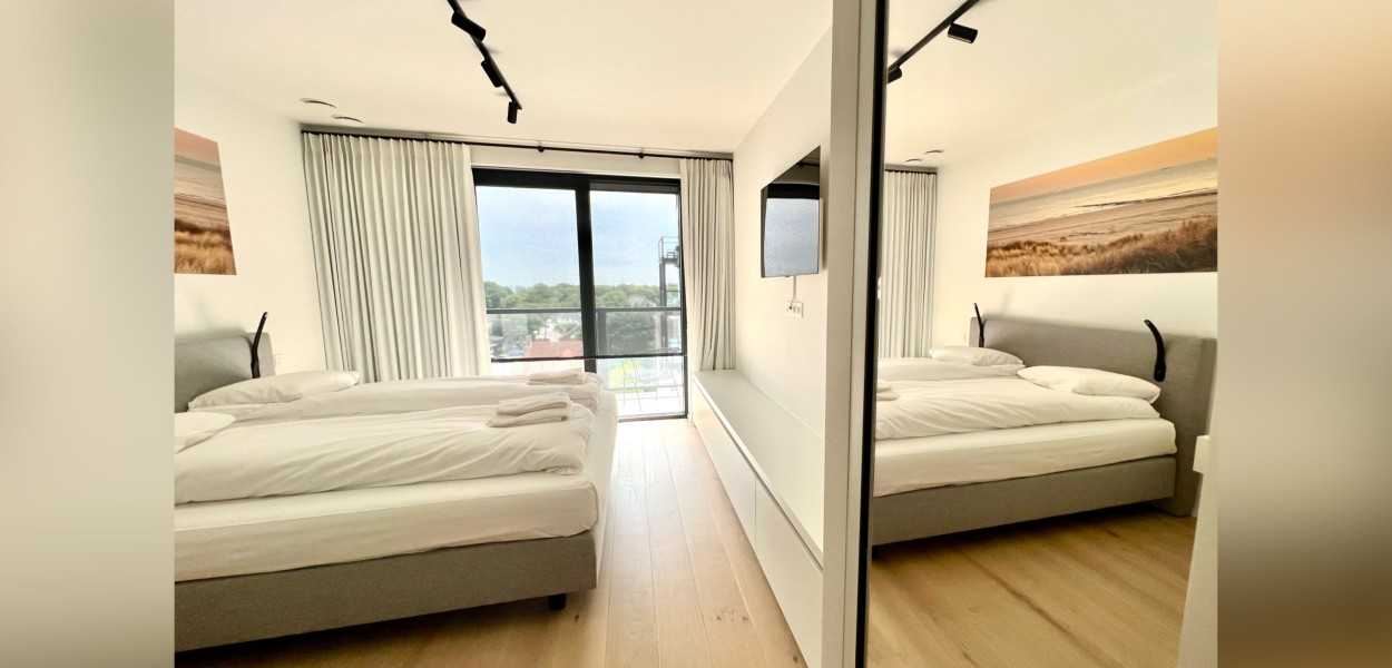 De beide slaapkamers zijn zeer elegant ingericht met luxe boxspringcombinaties die garant staan voor een goede nachtrust. De ruime ingemaakte kasten bieden voldoende opbergruimte. Vanuit de beide slaapkamers heeft u toegang tot het zuidelijk gelegen balkon, waar u vanaf ’s ochtends vroeg al van het zonnetje kunt genieten. Bij de masterbedroom is een luxe dressingroom voorzien en is de badkamer en suite. Beide badkamers beschikken over een inloopdouche en een dubbele wastafel. Een individueel toilet bevindt zich in de hal, evenals een berging waar onder andere een wasmachine en een droger zijn geplaatst.