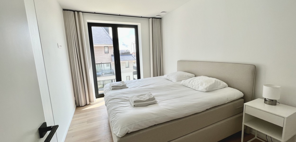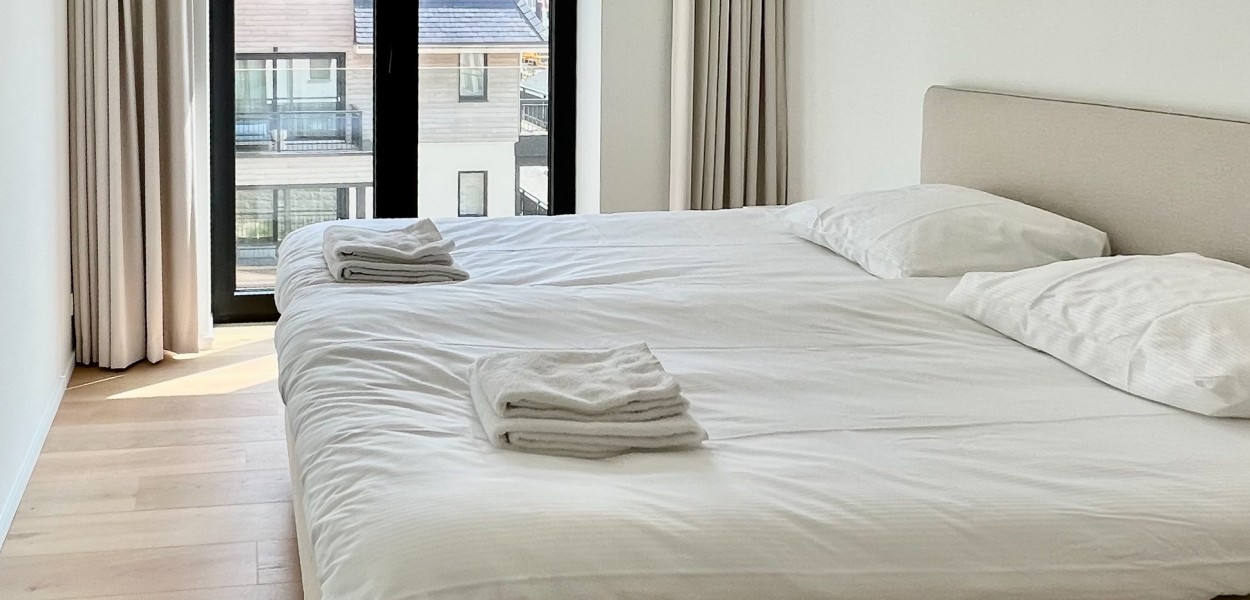 De beide slaapkamers zijn elegant ingericht met luxe boxspringcombinaties die garant staan voor een goede nachtrust. De ruime kasten bieden voldoende opbergruimte. De badkamer beschikt over een inloopdouche en een wastafel en ook een extra toilet, een individueel toilet bevindt zich in de hal. In de tweede slaapkamer is een wastafel met spiegel voorzien. In de berging staat onder andere een wasmachine en een droger tot uw beschikking.