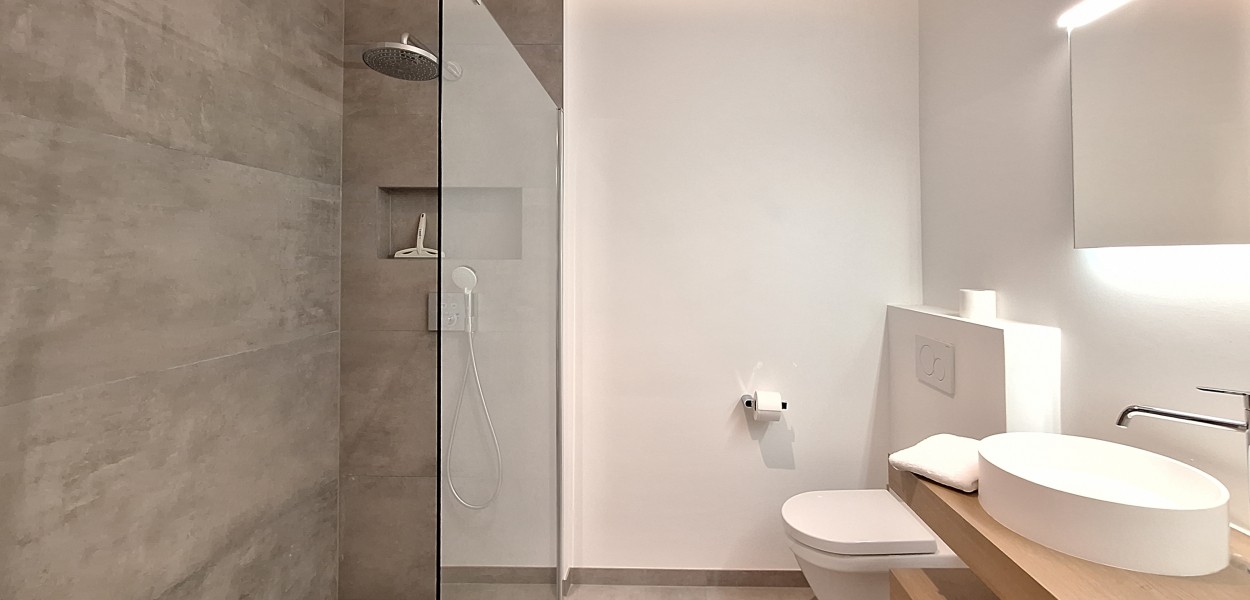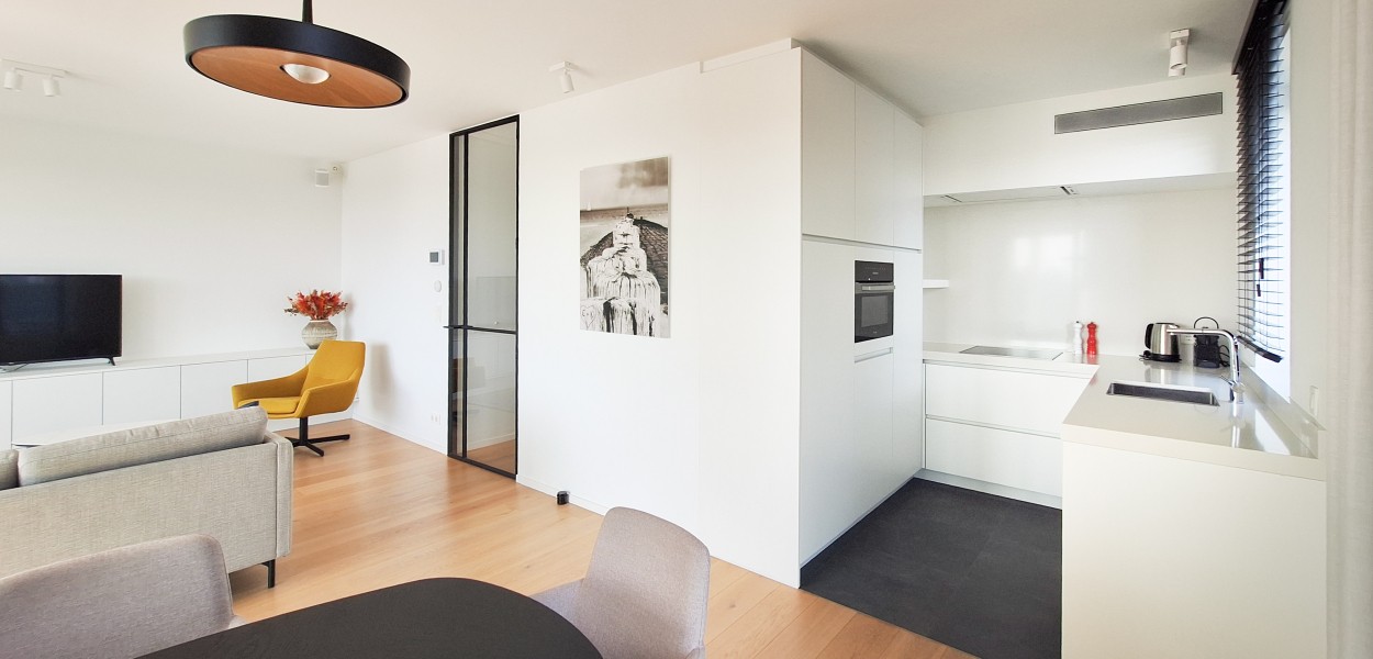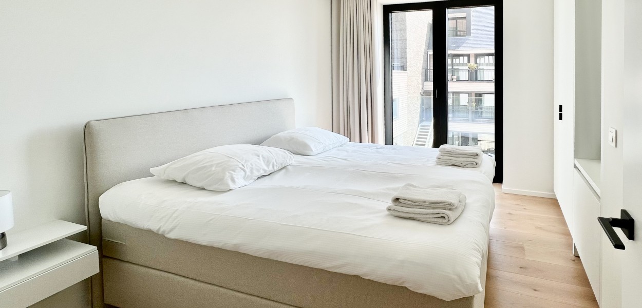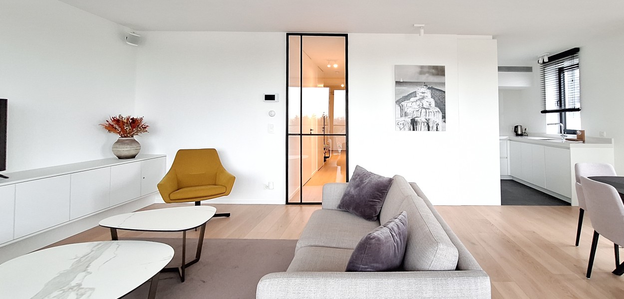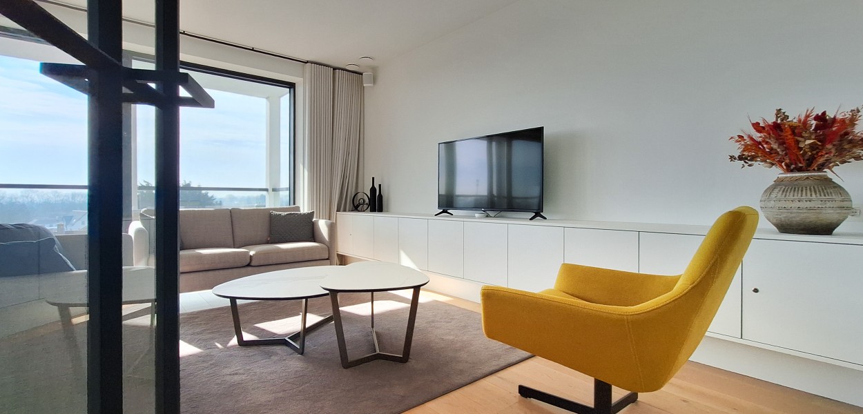 Het leefgedeelte bestaat uit een aangenaam lichte woonkamer, een praktische keuken en een gezellig eetgedeelte vanwaar u een fantastisch uitzicht geniet over het zuidelijk gelegen achterland, zowel vanuit de woning als vanaf het balkon. Dankzij deze ligging, geniet u nagenoeg de hele dag van het zonnetje. De woonkamer is voorzien van een comfortabel zitgedeelte met televisie en een schuifpui welke opent naar het balkon. U kunt hier overigens ook gebruik maken van het Sonos-muzieksysteem. Terug binnen treft u een eetgedeelte met een ruime eettafel met 4 stoelen die het woongedeelte handig met de open keuken verbindt. De keuken is voorzien van een Nespresso-machine, combimagnetron, een koelkast met vriesvak en een afwasmachine. U kookt op inductie en u heeft een uiterst compleet inventarispakket tot uw beschikking.