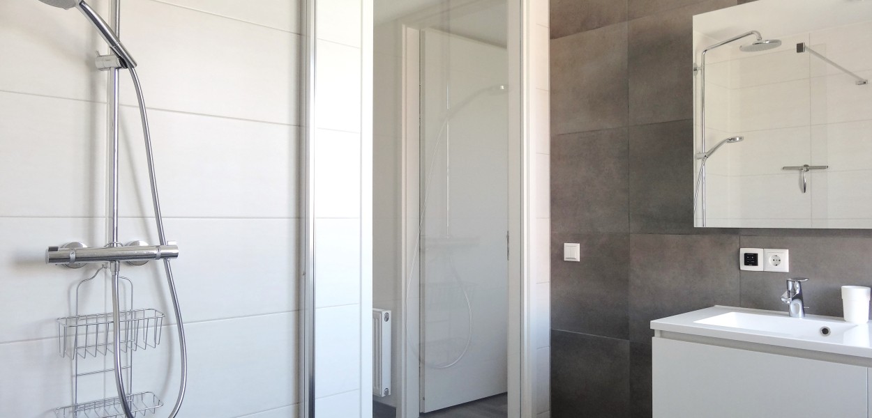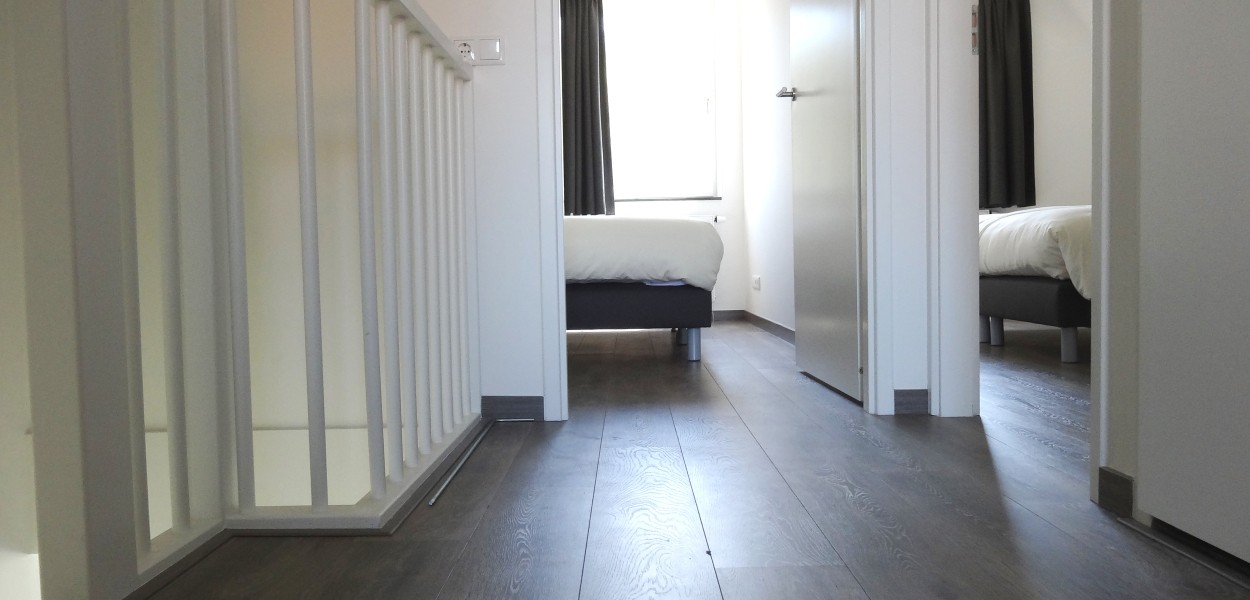 De eerste verdieping is voorzien van drie slaapkamers met luxe boxspringcombinaties en een badkamer met ruime inloopdouche en dubbele wastafel. Een individueel toilet bevindt zich zowel op de begane grond als op de eerste verdieping in de hal.