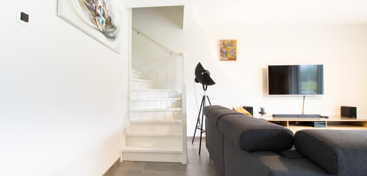 Op de begane grond vindt u een comfortabele zitkamer en een open keuken die van alle gemakken voorzien is. Zo vindt u er behalve een afwasmachine, ook een inductiekookplaat, een combimagnetron en een Amerikaanse koelkast met een vriezer. Zowel vanuit de keuken als vanuit de woonkamer loopt u via de tuindeuren zo het terras op en de zonnige tuin van 150m² in. Aan de voorzijde van het huis is een ruime slaapkamer met comfortabele boxspringbedden en een badkamer met ruime douche en een dubbele wastafel.